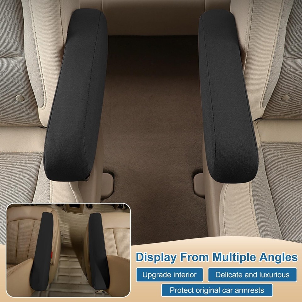 - 4uni Car Front Seat Armrest Covers Elastic Fabric Universal Fit Black 2 PCS