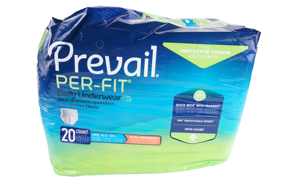 - 4x 20 pieces PREVAIL PER-FIT DAILY UNDERWEAR 80 COUNT LARGE 44 in - 58 in