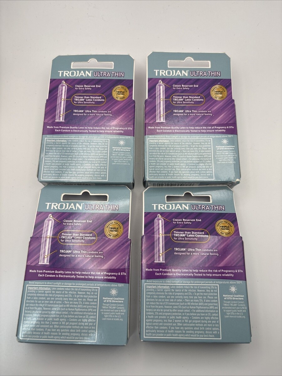 - 4x Boxes Trojan Ultra Thin Lubricated Condoms 3 ct EACH Exp 2027SEALED 12 TOTAL