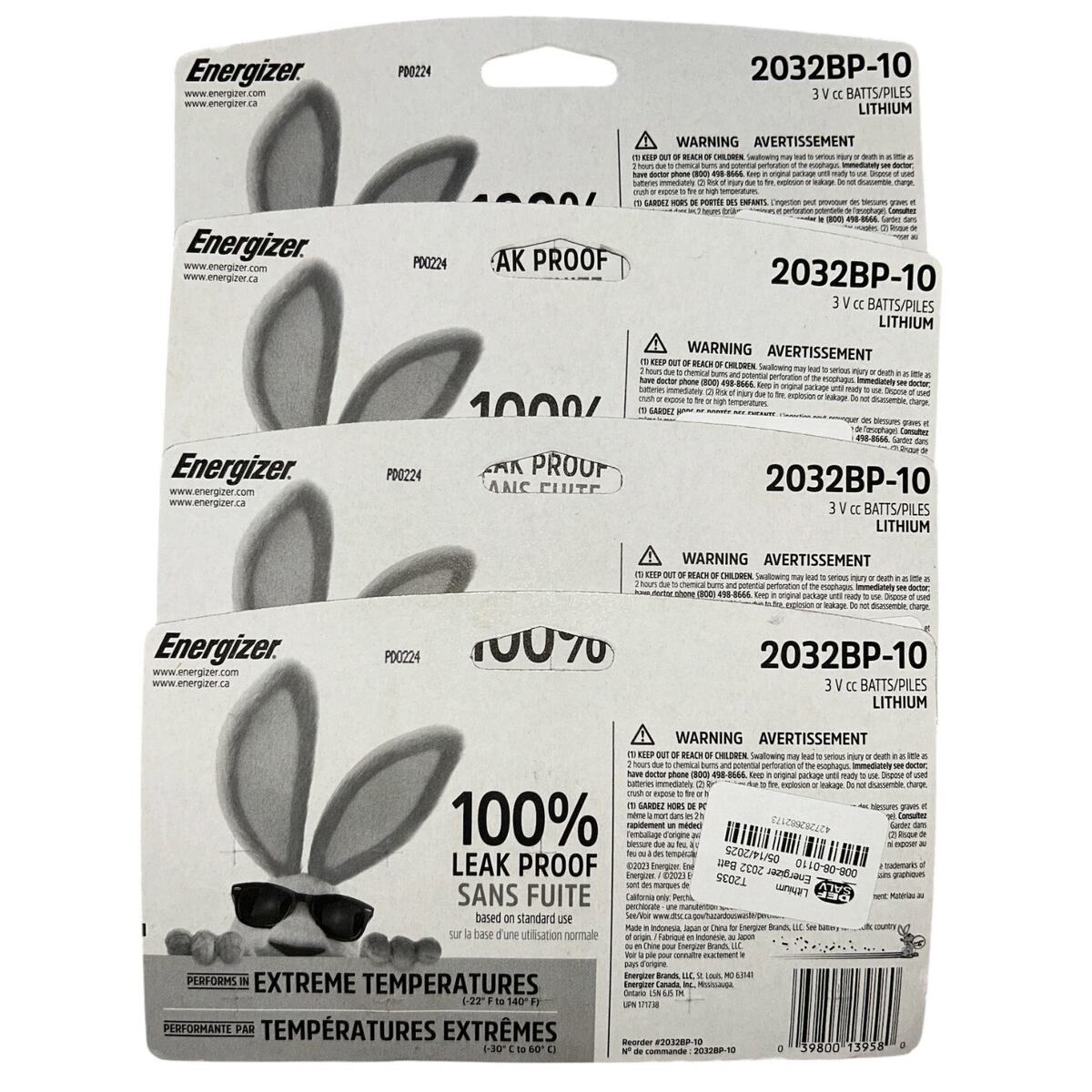 - 4x NEW Energizer 2032 3V Lithium Battery - 10 Pack- Coin Cell/Button