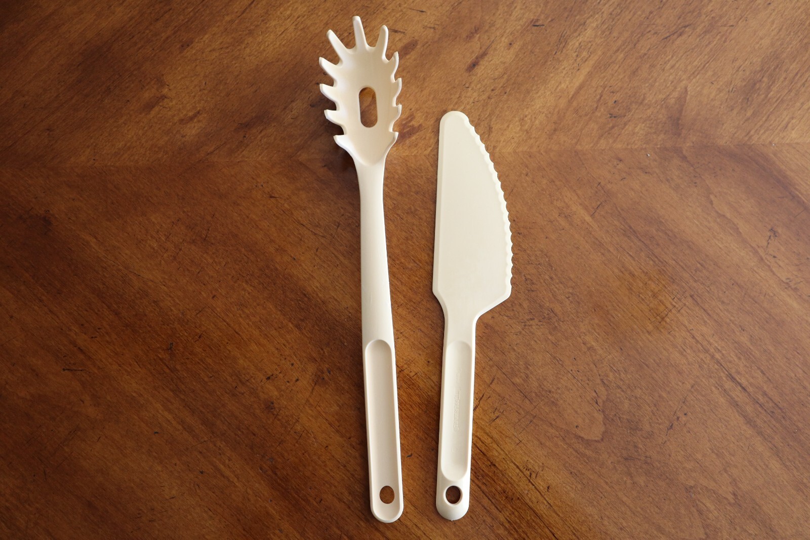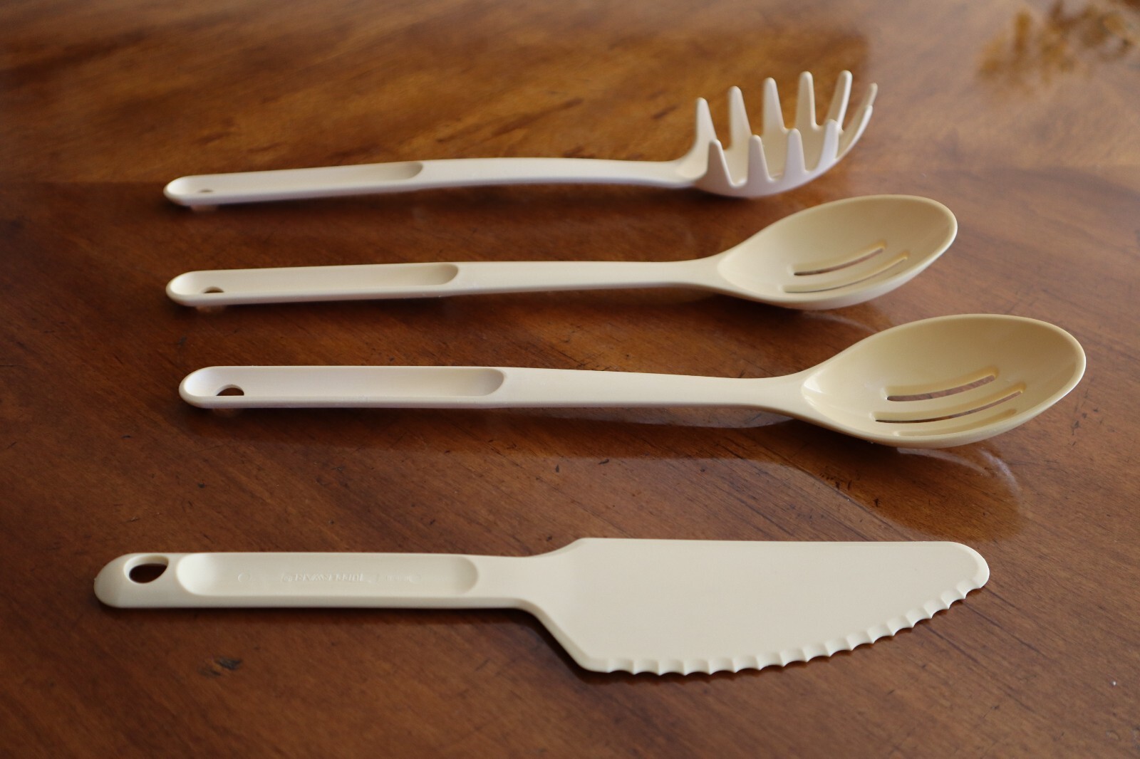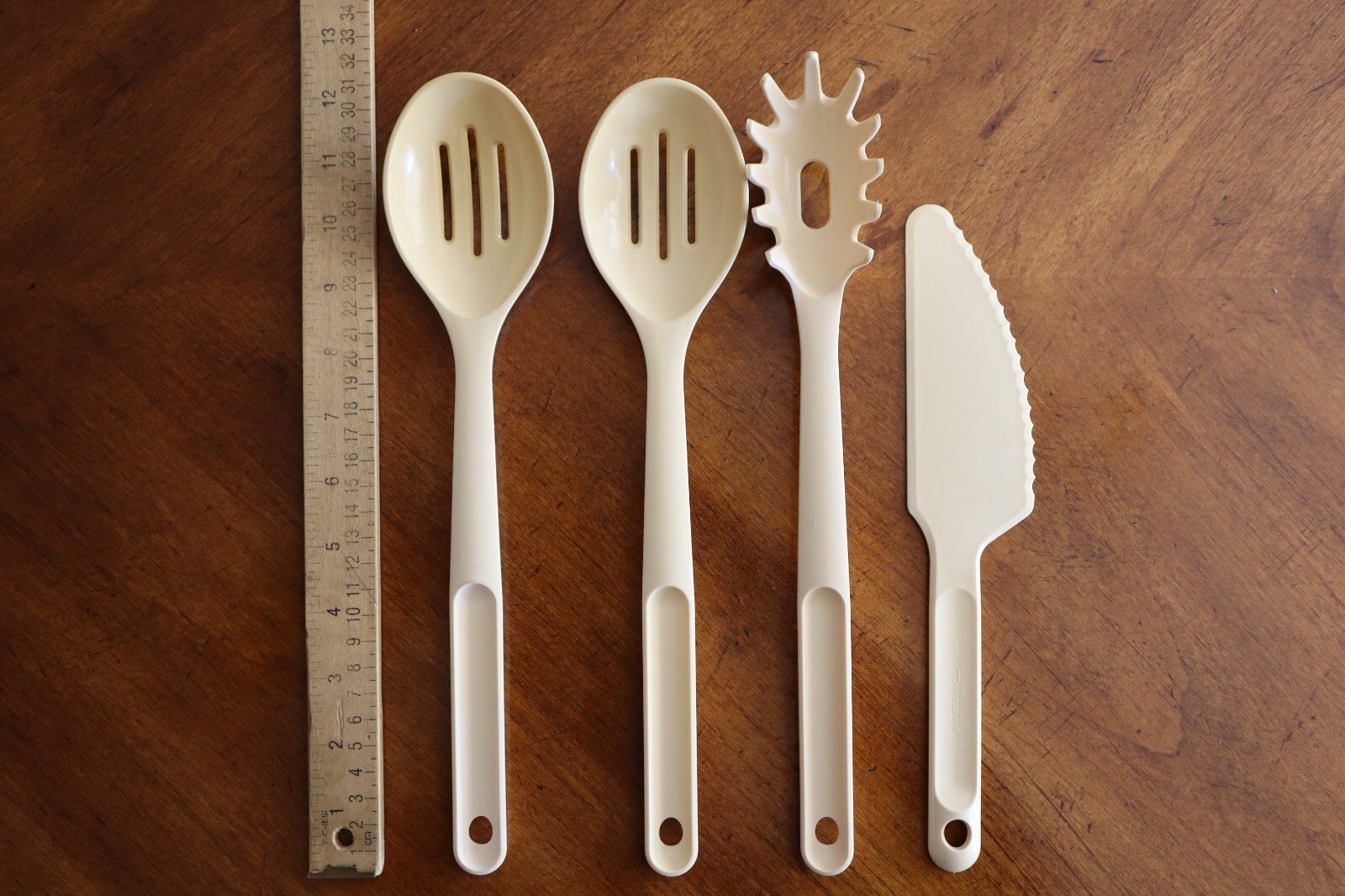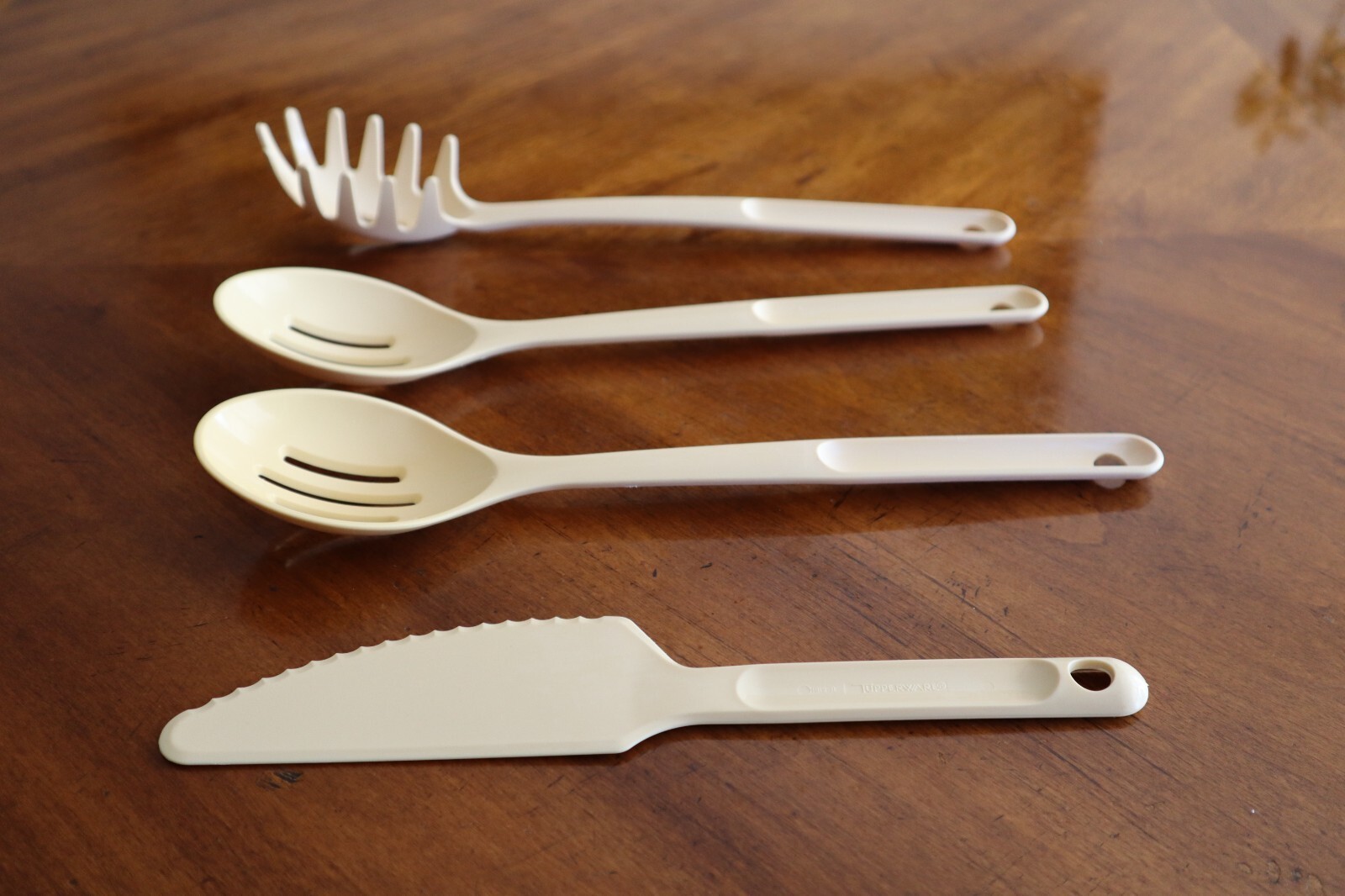 - 4x Tupperware Off-White Nylon Slotted Spoon Pasta Server 12" Serrated Knife