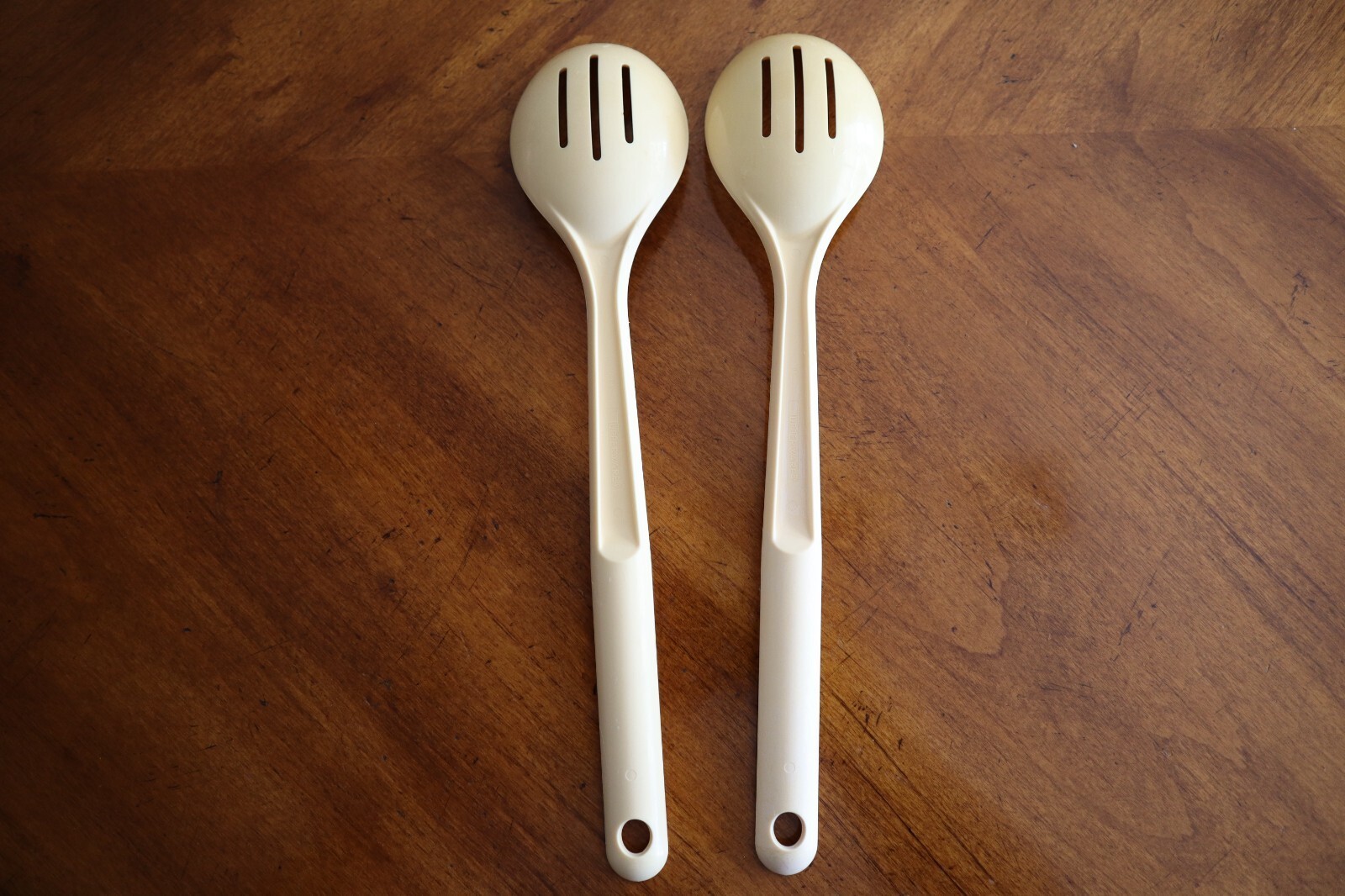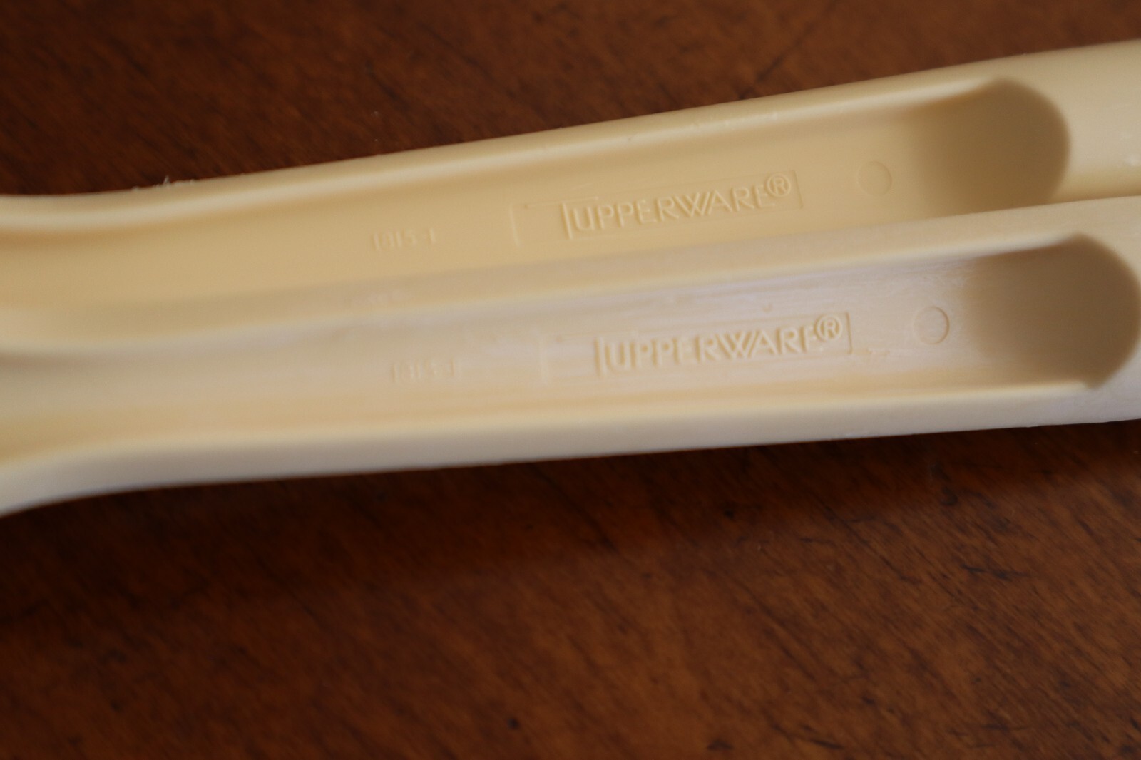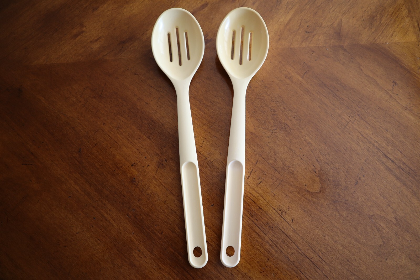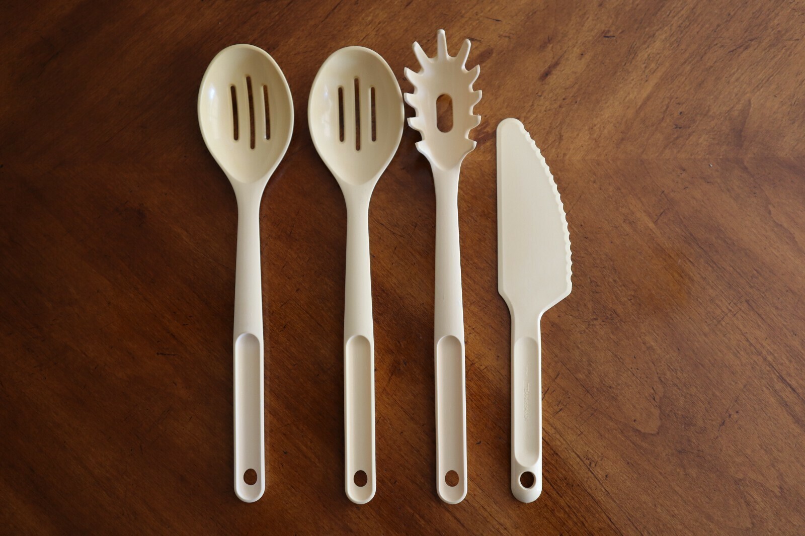 - 4x Tupperware Off-White Nylon Slotted Spoon Pasta Server 12" Serrated Knife