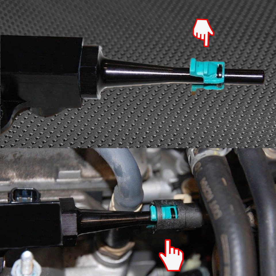 This adapter is designed for use with aftermarket fuel rails for K Series Engines. It allows reuse of factory fuel feed line with push on adapters.
