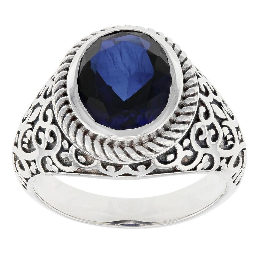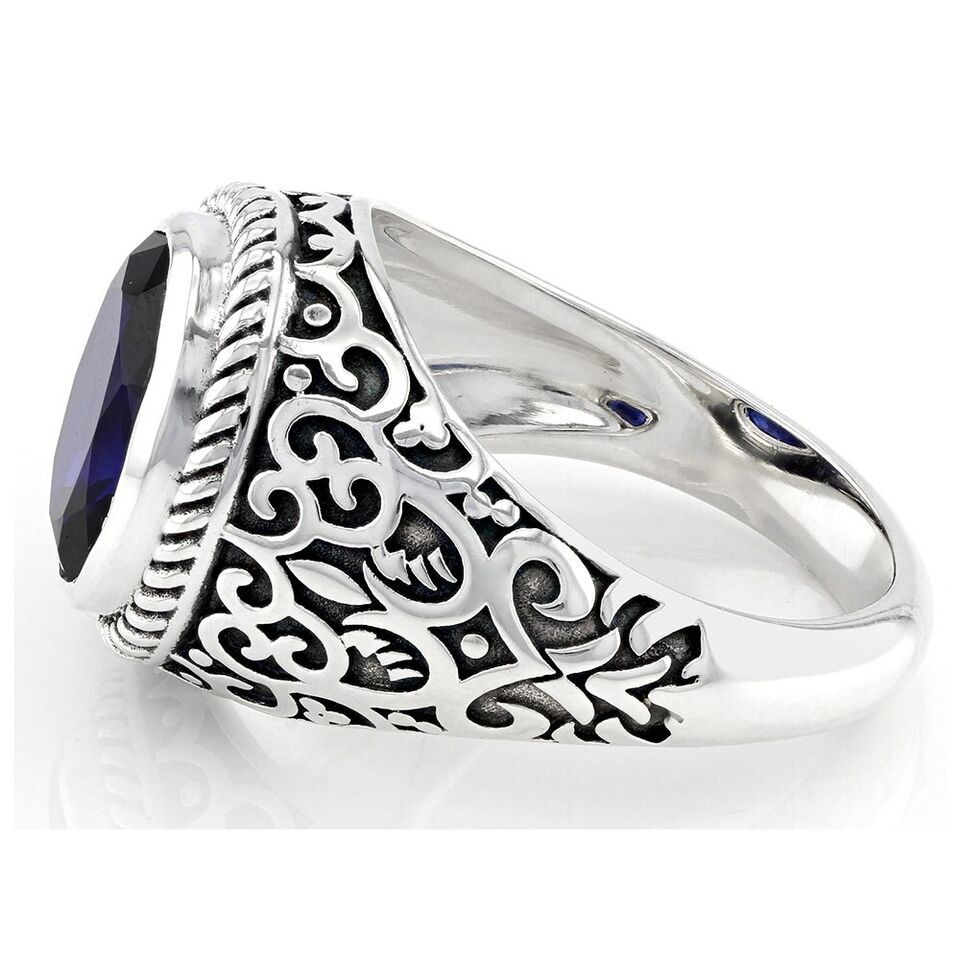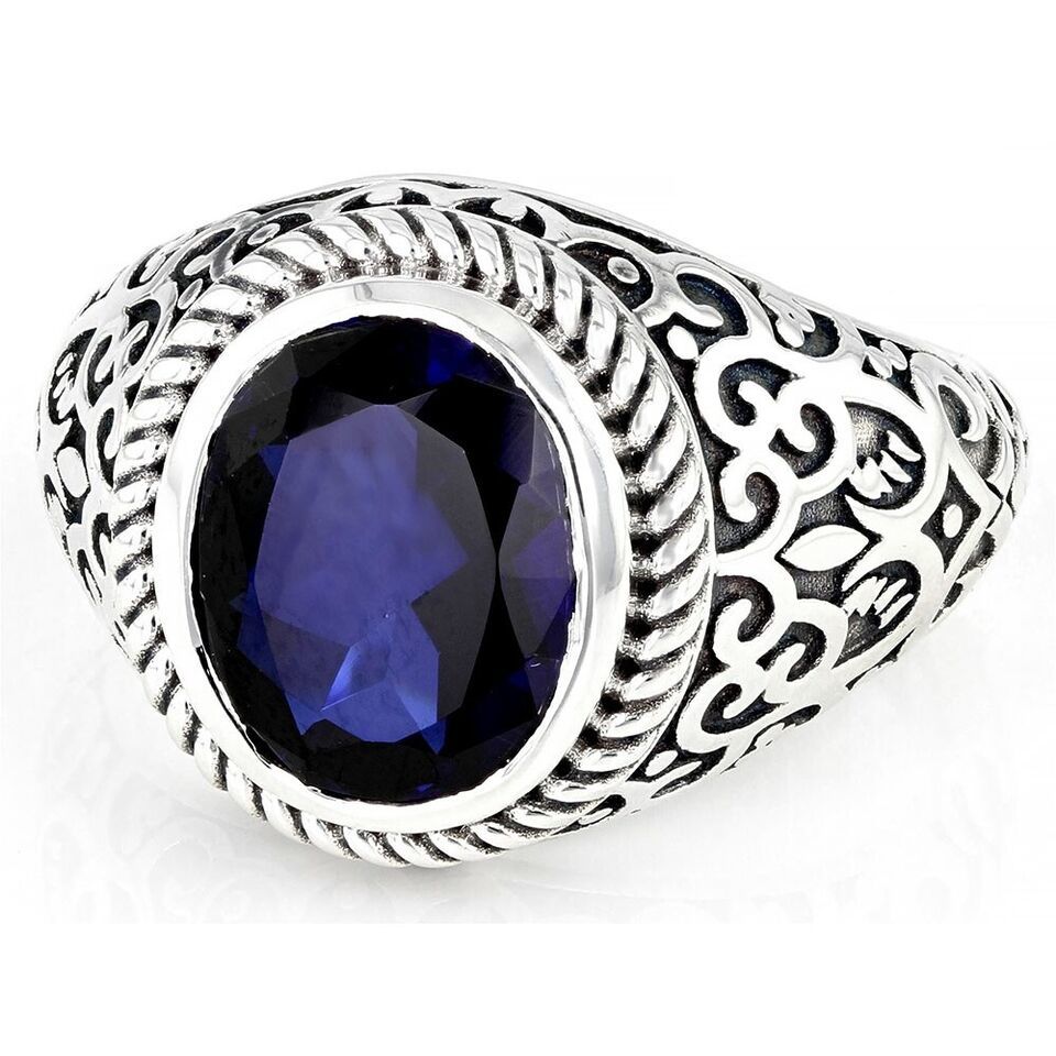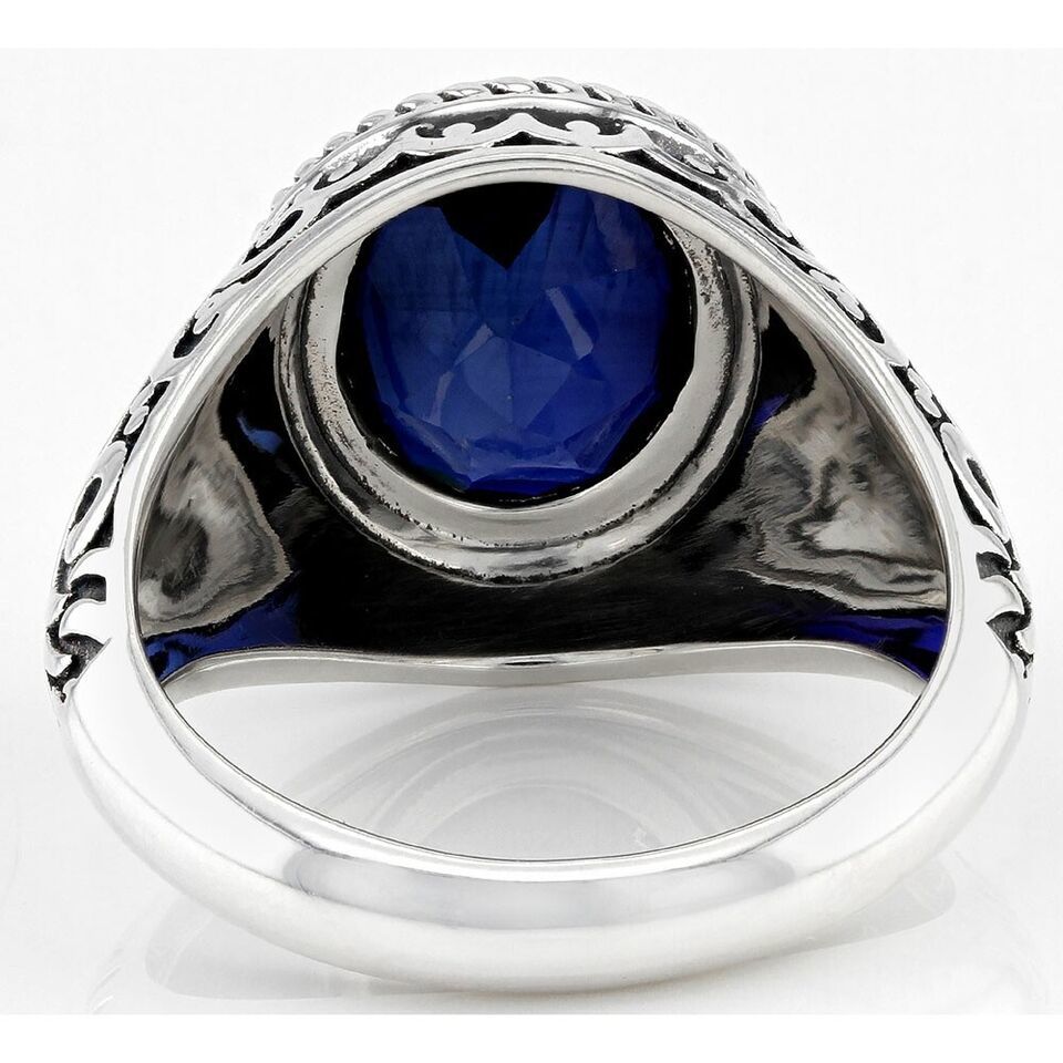 - 5.40 Ctw Oval Cut Blue Sapphire 14K White Gold Plated Solitaire Band Men's Ring