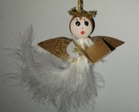 - 5.5” Gold Winged Angel Christmas Ornament White Feather Body
