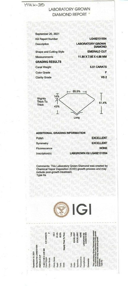 - 5.51 Carat Cvd Faux Diamonds Grown Emerald Cut Diamond F VS2 Igi Certified- s...
