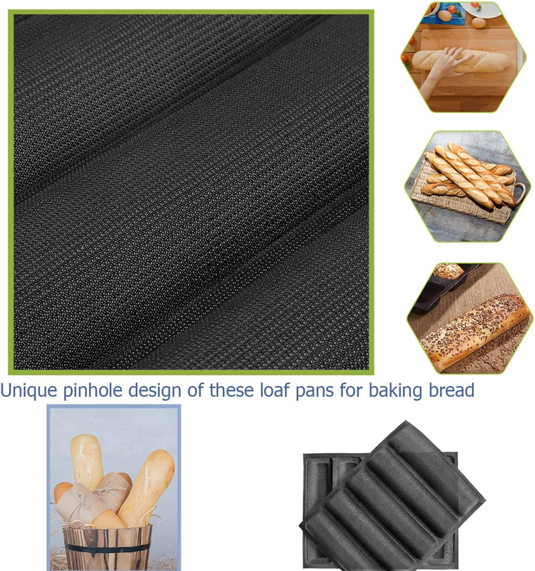 Unique pinhole design of this French bread baking pan facilitates better air circulation and heat distribution.