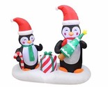 5 Foot Tall Lighted Inflatable Penguins Holding Christmas Tree and Gift Box Yard Decoration