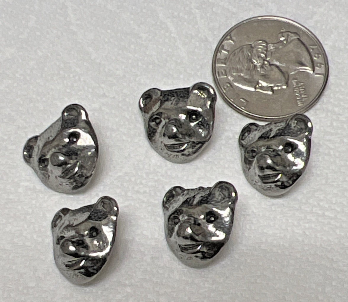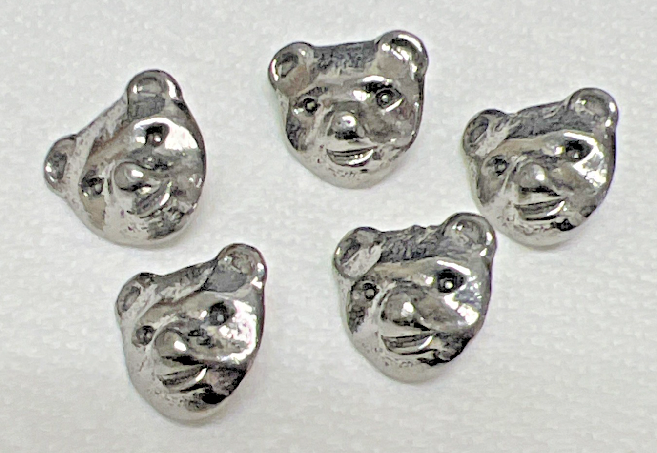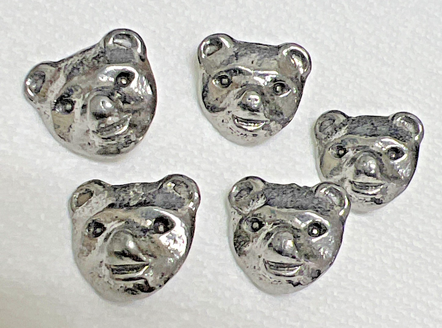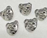 - 5 Fun Bear Face Metal Buttons Silver Tone 5/8 inch