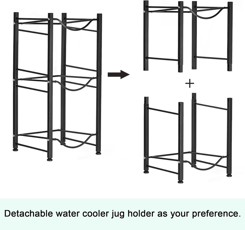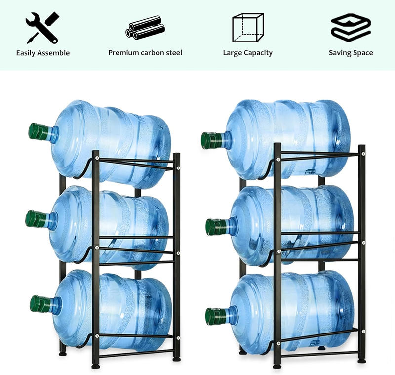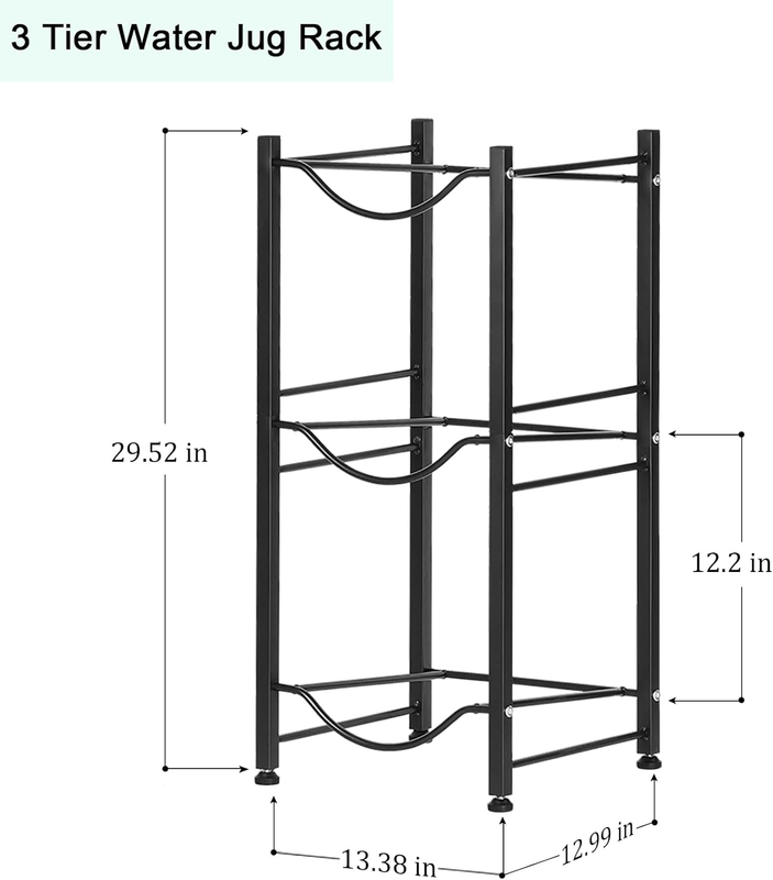 The 3 tier water jug holder is very sturdy and stable, with the ability to hold 3 water bottles at once and provides more space to keep your home and kitchen clean.