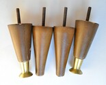 - 5" Mid-century Couch Feet Conical Wood Brass Replacement Parts Legs 4 VTG MCM