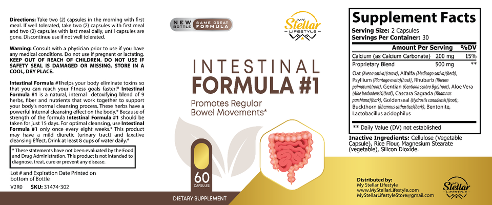 5 Pack Intestinal Formula #1, promotes regular bowel movements digestive detox-60 Capsules x5