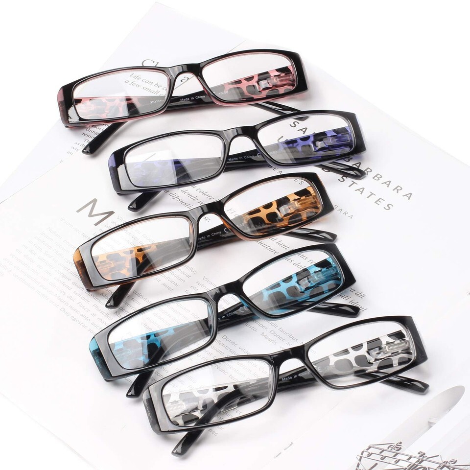 - 5 Pack Spring Hinge Reading Glasses Rectangular Multicolour 2.25 Power