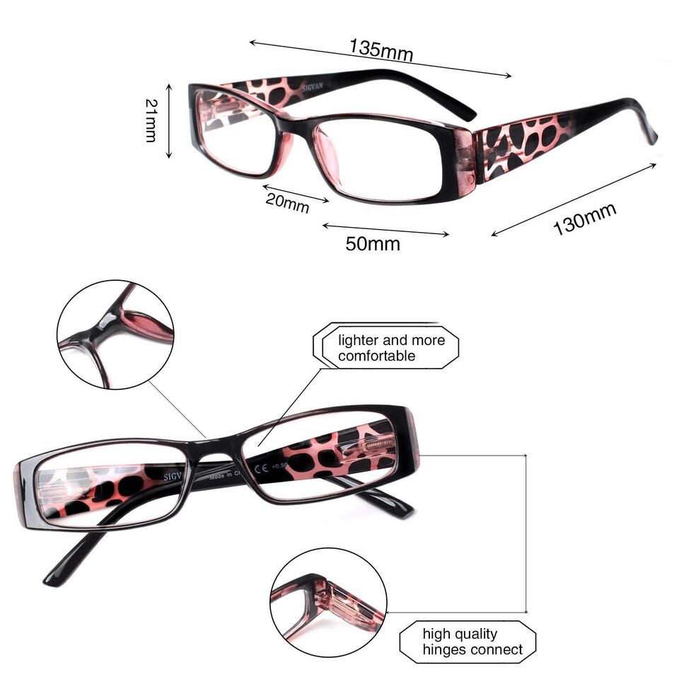 Lightweight frames and plastic lenses with flexible spring hinge temples ensure a comfortable fit without uncomfortable pinching,clear vision,they really work well when you can't read those fine prints on newspaper etc.Each pair of readers glasses is carefully selected to ensure quality
