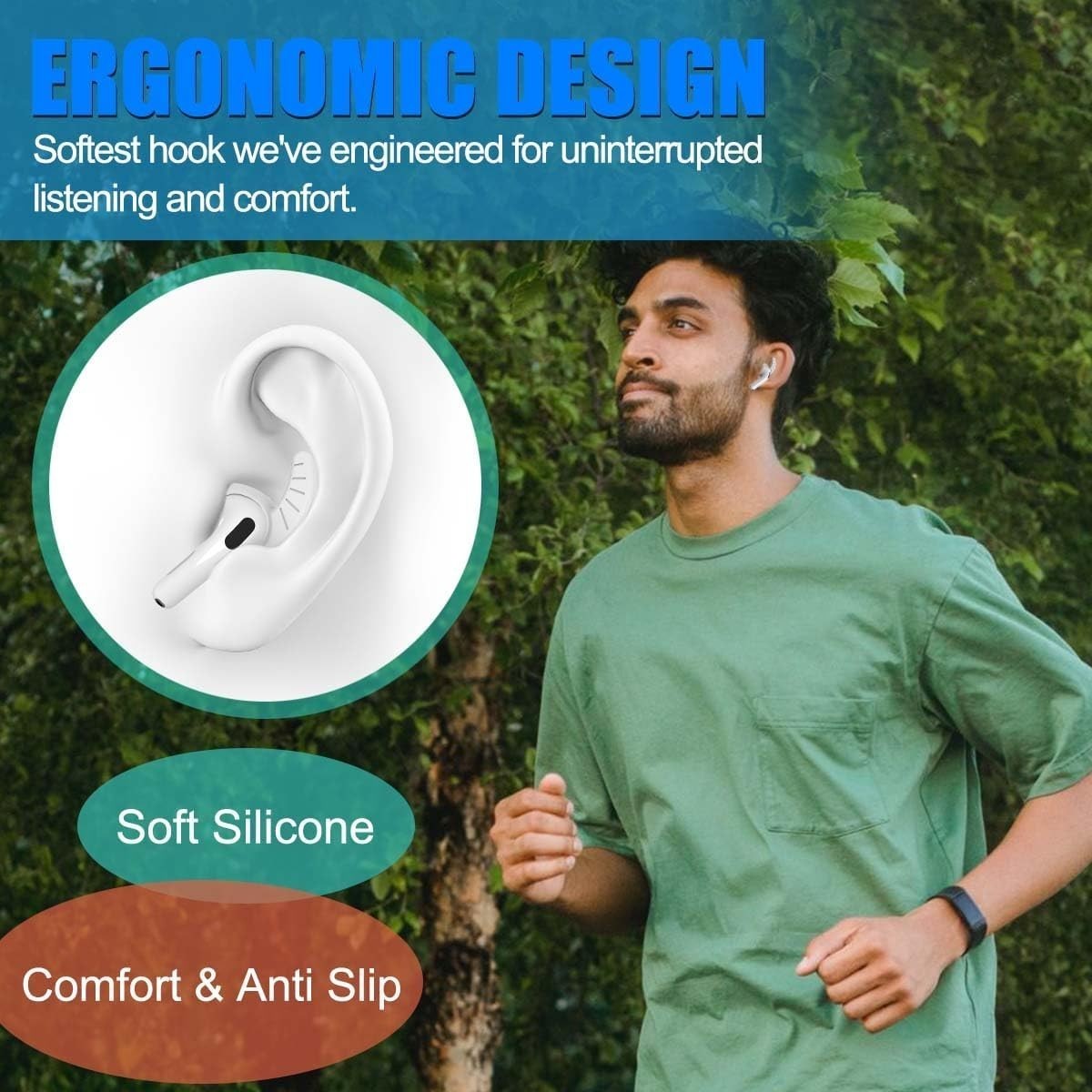 Ergonomic design earhooks fit your ears perfectly and securely, won't fall off under strenuous exercise. Great for running, jogging, cycling and any other activities