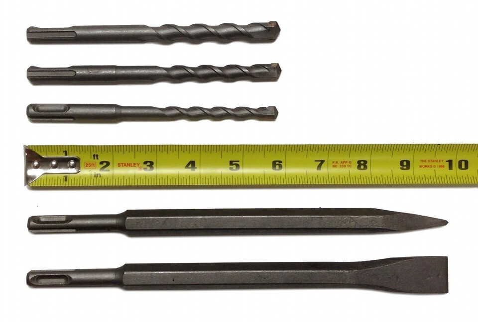 - 5 Pc HAMMER DRILL BIT SET SDS Plus Masonry Concrete Bull Point Flat Chisel Steel