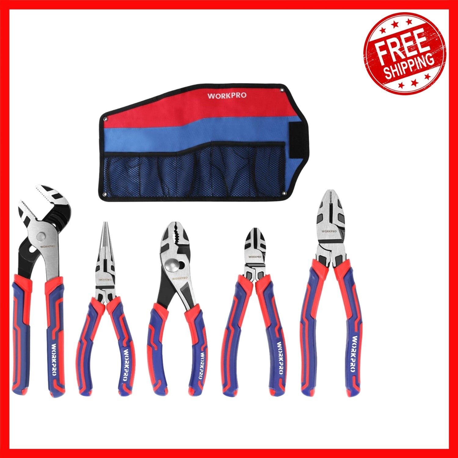5-Piece Pliers Set with Ergonomic Grip Storage Pouch - CR-V Steel