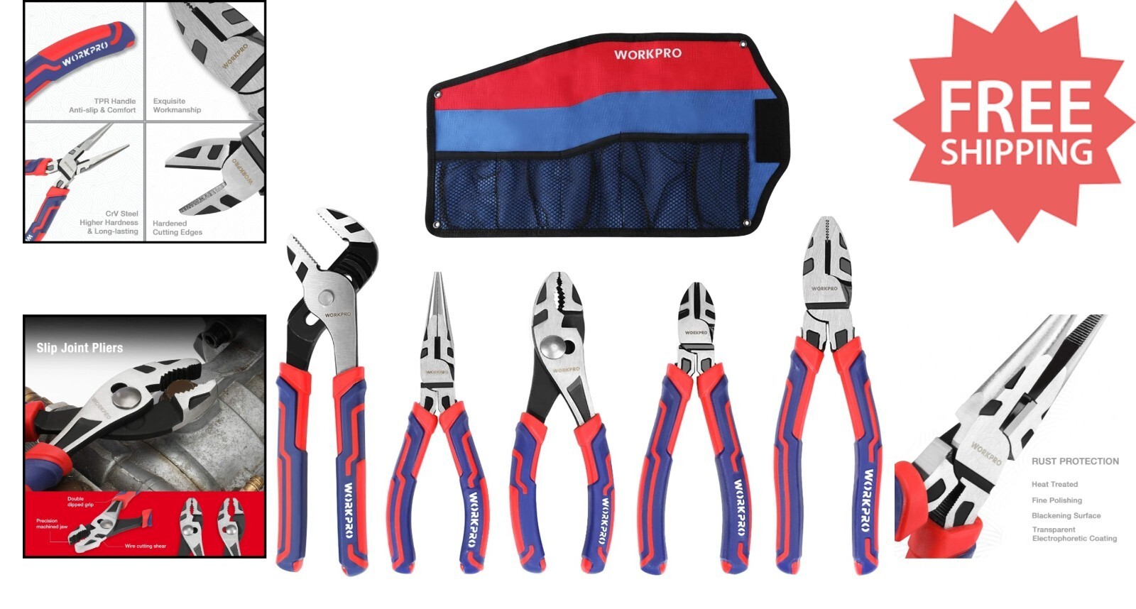 This comprehensive pliers set features high-quality CRV steel construction with a heat-treated, blackened surface for enhanced hardness, toughness, and corrosion resistance. Each tool is equipped with a comfortable, anti-slip bi-material handle available in three stylish colors. The set includes a variety of versatile pliers?long-nose, diagonal, groove, slip, and linesman?perfect for home maintenance, gardening, automotive work, and general tasks. Out of the box, the pliers come with a protective electrophoretic coating and grease to prevent rust; simply wipe clean before first use and store in a dry location for optimal longevity. Packaged in a convenient storage pouch, this set is a must-have for both DIY enthusiasts and seasoned professionals.