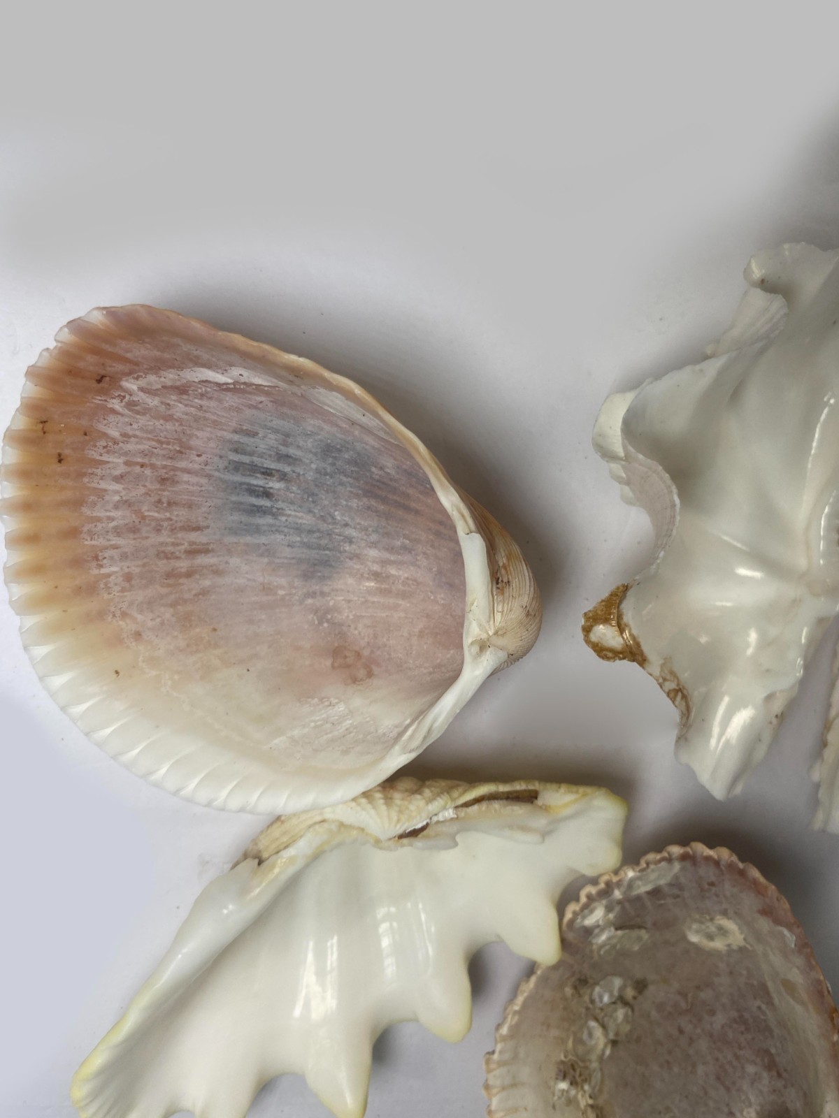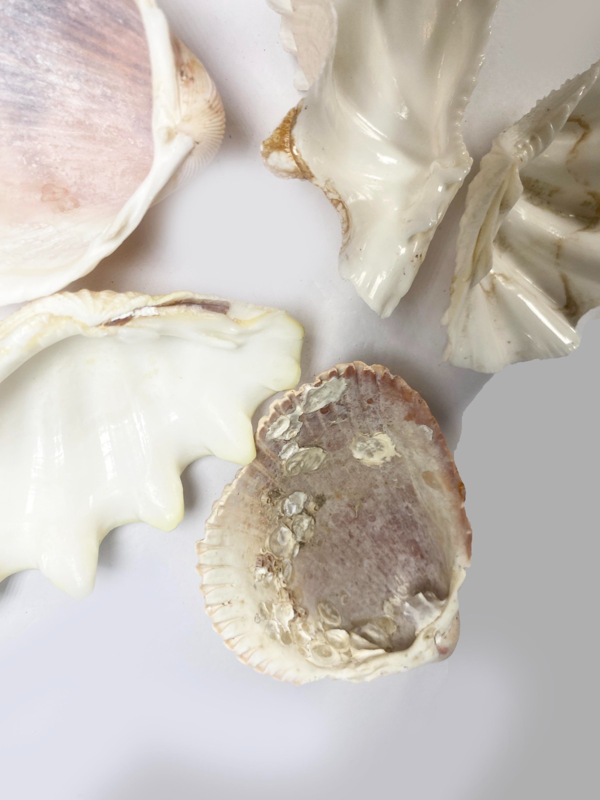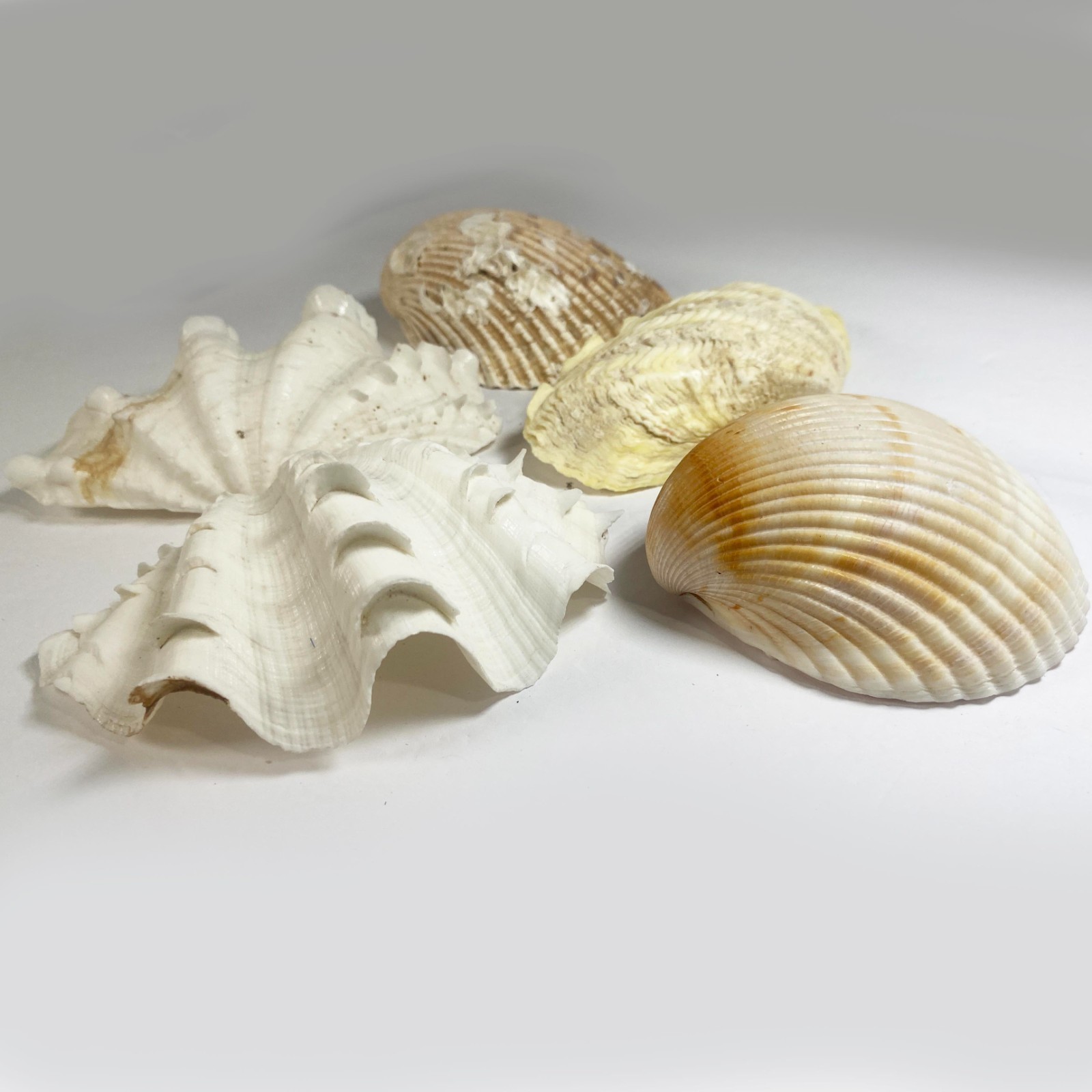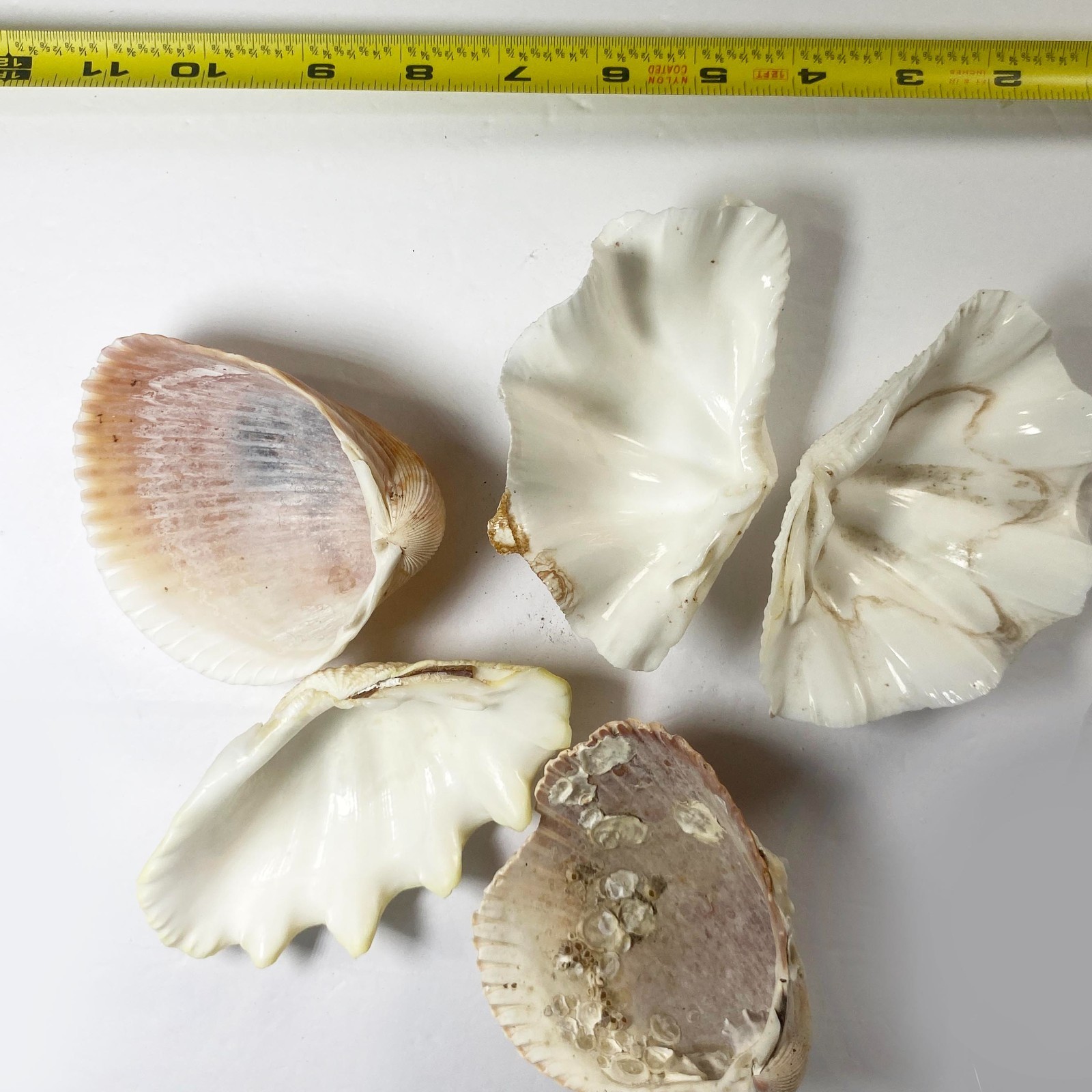 - 5 Piece Shell Lot Cockle Shells White Ruffled Clam Flute Crafting Beach Decor