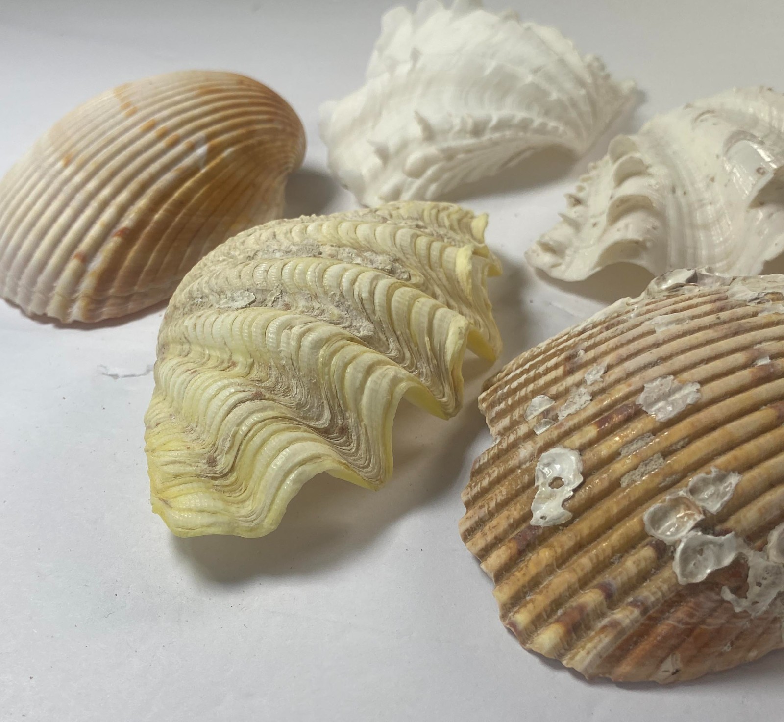 5 Piece Shell Lot Cockle Shells White Ruffled Clam Flute Crafting Beach Decor