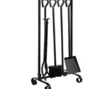 - 5 Piece Wrought Iron Fireplace Tools Set Black Fireset with Tongs Holder