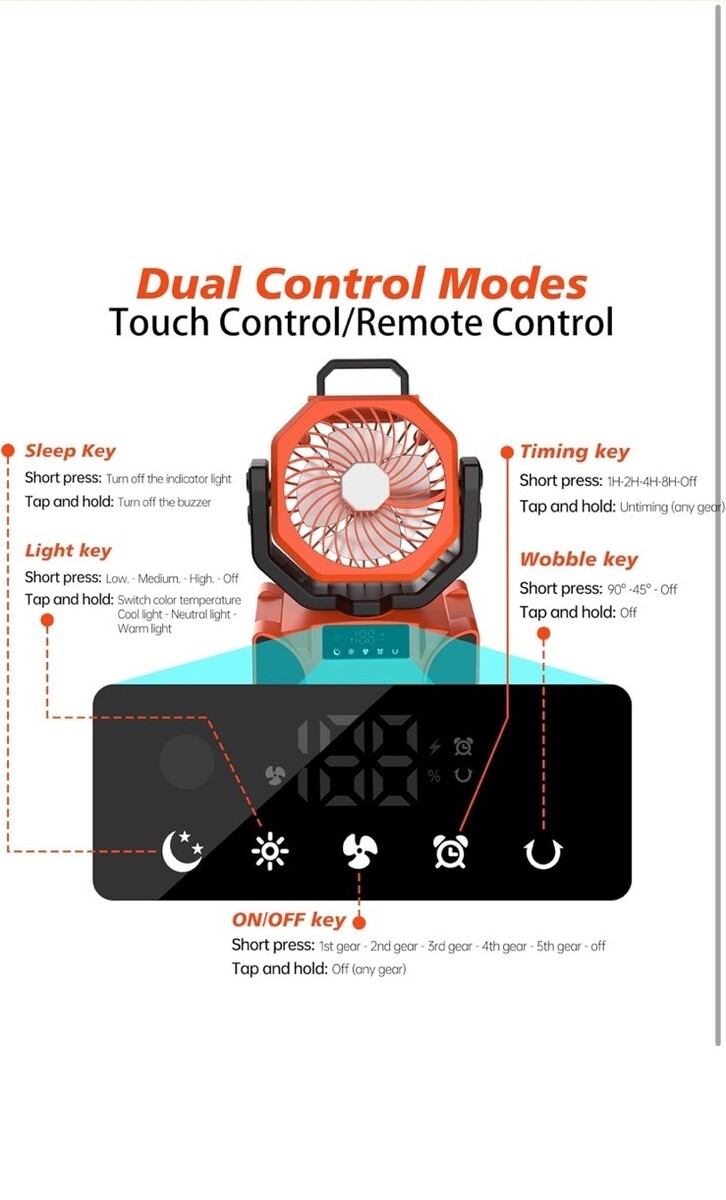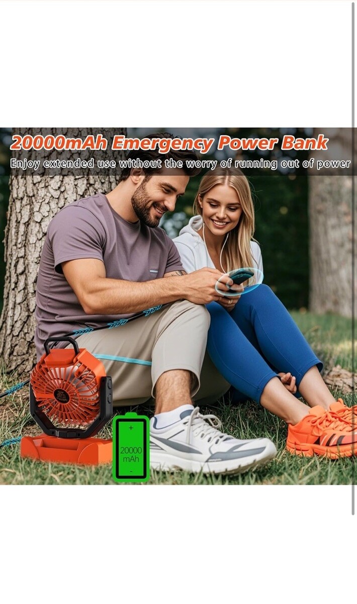 - 5 Wind Speed Battery Powered Heavy Duty Portable Fan with 20000mAh Power Bank