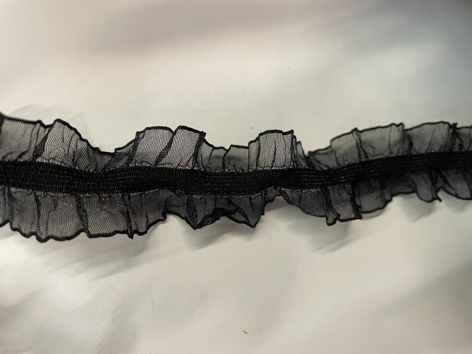 - 5 Yards BLACK Stretch Organza Ruffle Elastic Trim 7/8”
