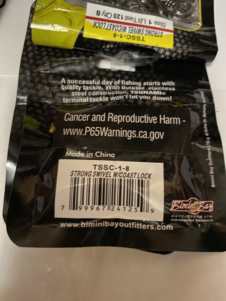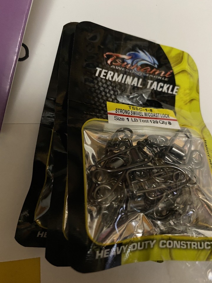 - 5 pack -8ea Tsunami Size 1Lb Test 120-8 strong Swivel WCoastlock terminal tackle