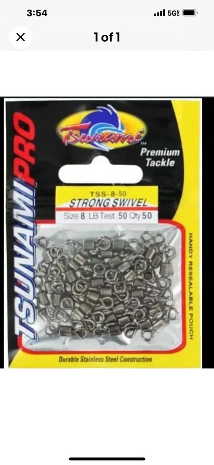 - 5 pack- Tsunami TSS-8-50 Strong Swivel Black Size 8 LbTest 50 CT 50