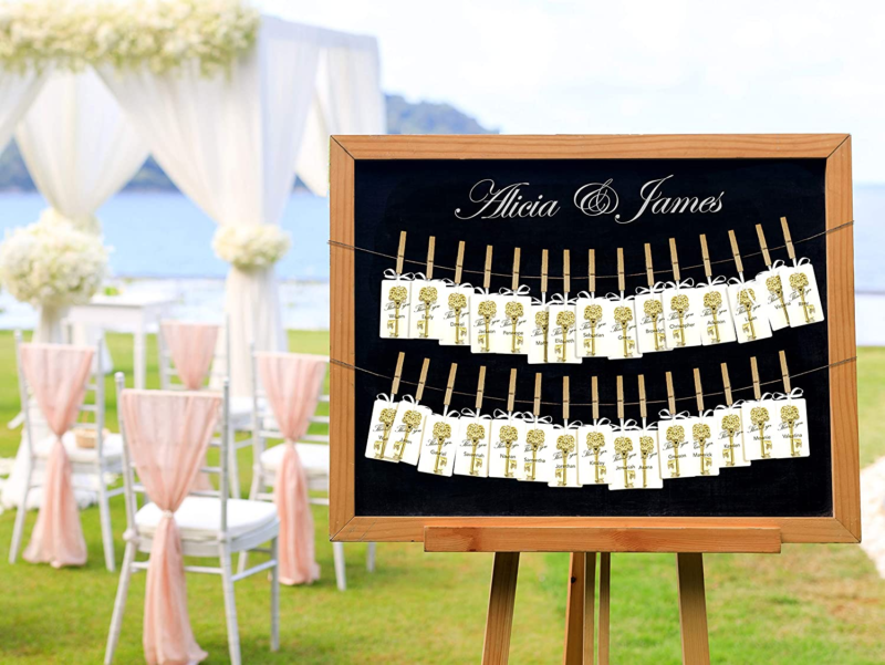 ESCORT TAGS TO GIVE YOU A PERSONAL TOUCH - Personalize your ESCORT CARD TAGS and engage your guests: Write guest name, message or table numbers on the escort tags. Keep your friends and guests engaged, as they look around for their personalized cards, tag, or get seated
