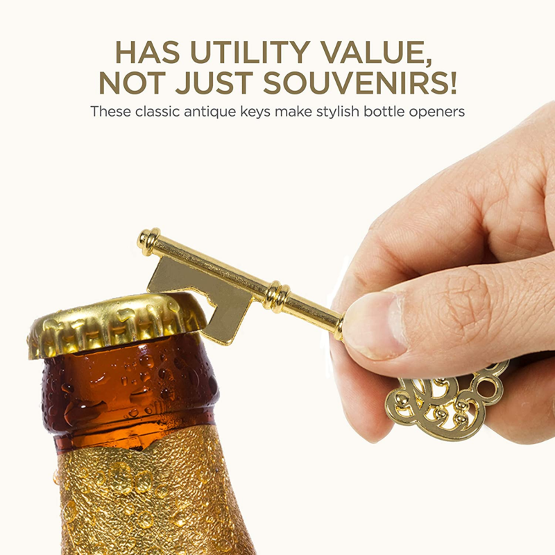 MORE THAN JUST A FAVOR - Has utility value, not just souvenirs! These classic antique keys make STYLISH BOTTLE OPENERS. Keep them in your kitchen or bar, or hook them onto your key ring. Your guests would remember you long after your wedding or party! Yet, INEXPENSIVE in bulk!