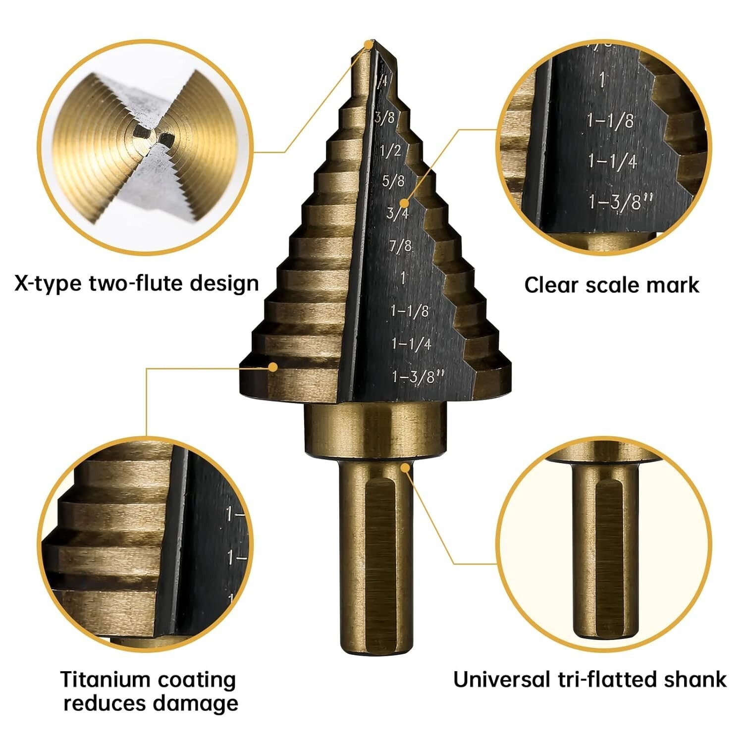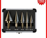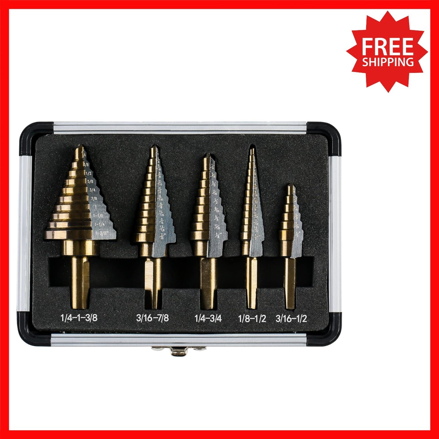 50 Size HSS Titanium Step Drill Bits – 5PC Set in Aluminum Case for Versatility