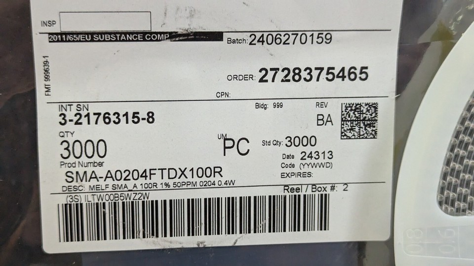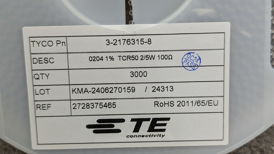 50 x Brand new and Sealed Surface Mount, Chip Resistors - 100 Ohms 1% 0.4W, 2/5W Chip Resistor MELF, 0204 Automotive AEC-Q200 Thin Film. See pictures for full descriptions. The 50 Resistors comes from a reel of 3000.
