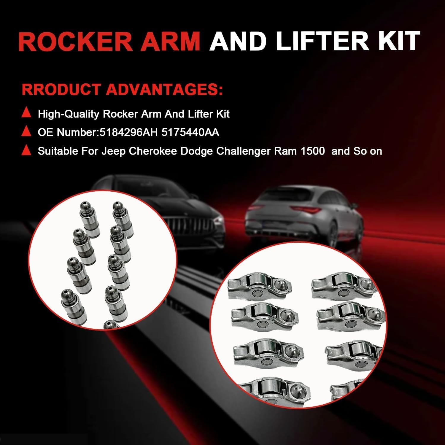 [OEM Part Number] Replaces 5184296 AH, 5184332AA, 5184332 AA, 5184296AE, 5184296AF, 7B0109441B. Compatible with Jeep Cherokee 2014-2020, Grand Cherokee 2011-2019, Wrangler 2014-2018 3.0L 3.2L 3.6L engines; Compatible with Dodge Ram 1500 2013-2019, Promaster 1500 2500 3500 2014-2018 3.6L engines [Vehicle Fitment] Compatible with Dodge Grand Caravan 2011-2018, Journey 2011-2018, Durango 2011-2015, Challenger 2011-2020; Compatible with Dodge Charger 2011-2020, Avenger 2011-2014; Compatible with Chrysler 200 2011-2017, Chrysler 300 2011-2019, Chrysler Town Country 2011-2016 3.6L engines [High Quality Performance] The NITOY0 Rocker Arm Lifter Kit is tested for reliability and long lifespan. Made from high-quality steel with a smooth surface to prevent wear and ensure stable operation. [Complete Kit and Exact Fit] Includes 24 rocker arms and lifters. Built to OE specifications, ensuring perfect fit, form, and function for seamless installation. [Choosing the Right Part] Before buying, research to make sure the part fits your vehicle; enter all vehicle information (year, make, model, engine, and interior) to ensure compatibility, and check the qualifying instructions and that a professional installation is recommended