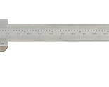 The caliper has a dual vernier scale, with an upper scale measuring in inches and a lower scale measuring in millimeters. A 14-degree vernier face angle improves visibility and helps prevent parallax error in measurement reading. The caliper?s two sets of jaws provide the capability to make OD and ID measurements, as well as step measurements, where the butt end of the fixed jaw measures one end of a work piece before its upper/lower or inner/outer steps are measured. A depth measuring blade with rounded edges provides the ability to make depth measurements. The scales are raised to slide easily and protect the graduation markings. A thumbwheel permits fast and easy measuring. A clamping screw on the upper scale rotates to control scale movement and locks to hold the sliding jaw?s position. The caliper is made of hardened, corrosion-resistant stainless steel with a satin chrome finish that helps reduce glare. The caliper meets Federal Accuracy Specifications GGG-C-111B.