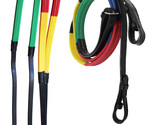 Challenger English Multicolored Rubber Grip leather reins. Rubber grip helps with slippage, providing a more secure feel in your hands. Features rust-free stainless steel hardware. Hook stud bit ends. Measures 54" (Full) long x 5/8" wide.