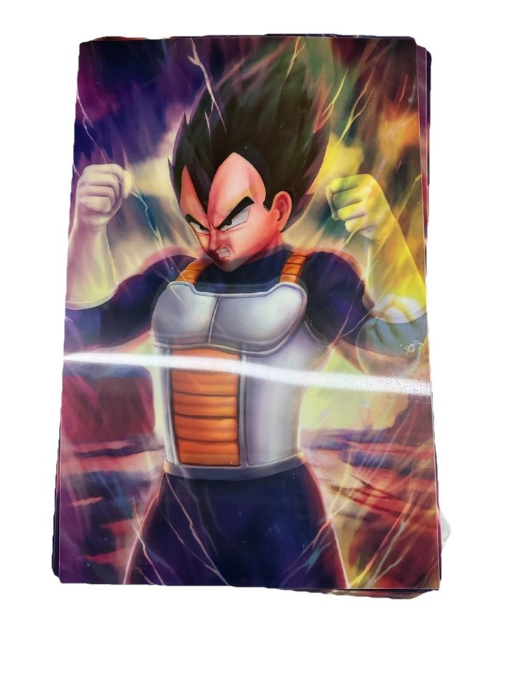 Bundle of 55 Dragon Ball Z Vegeta Super Saiyan 3D Lenticular Effect Poster measuring 17x11 inches. This collectible features the iconic character Vegeta from the popular animation franchise Dragon Ball Z, adding a unique 3D lenticular effect to the poster design. Fans of the TV show Dragon Ball will appreciate this distinctive piece of animation merchandise for their collection.