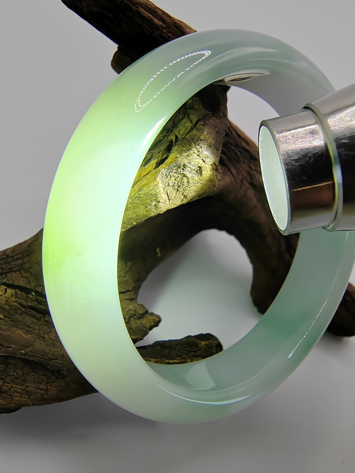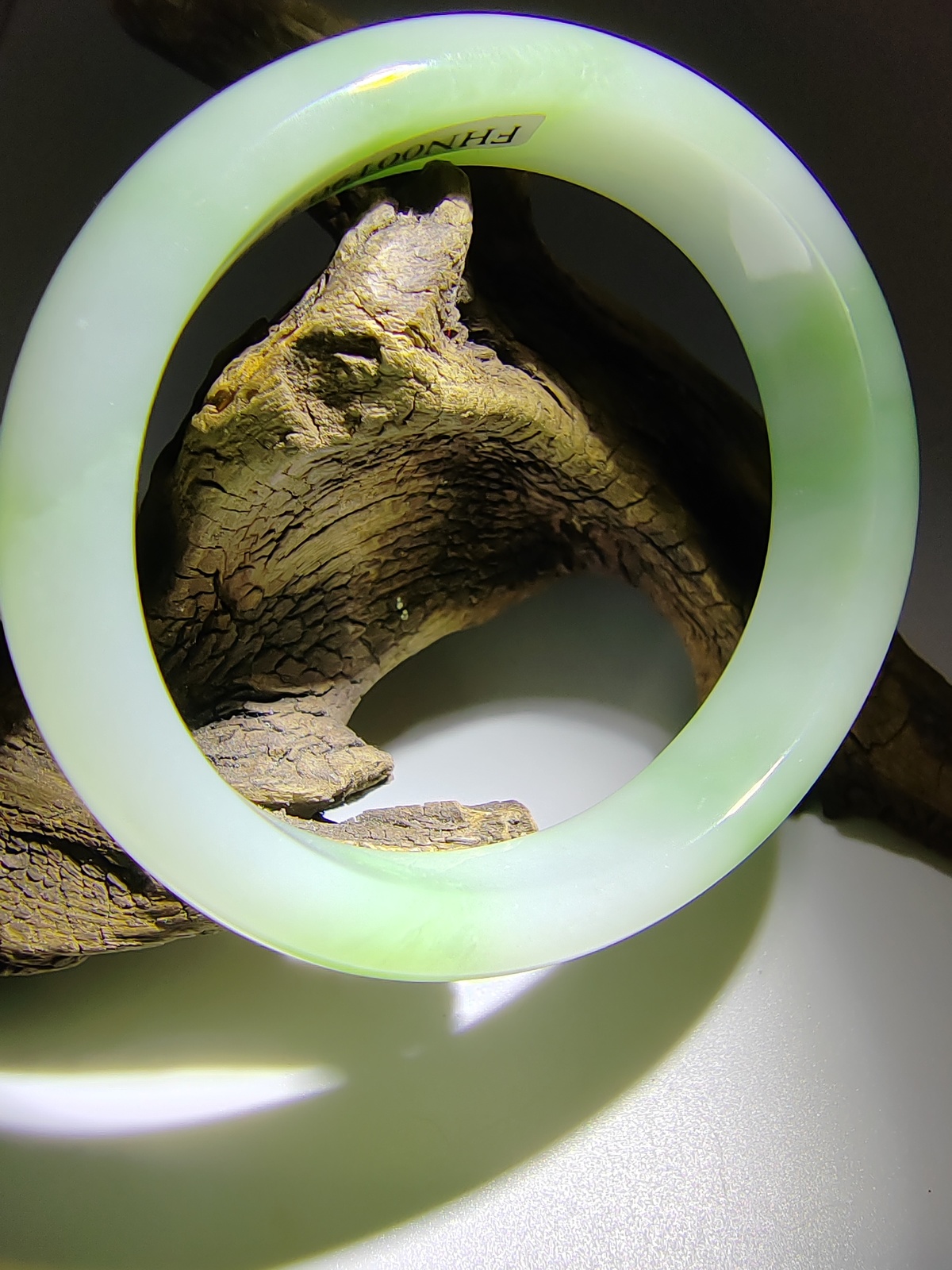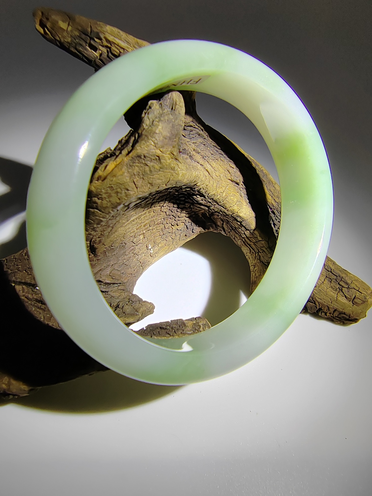 - 56.40 X 49.70mm Oval Light Green Burma Jadeite Jade Bangle Bracelet # 240 carat