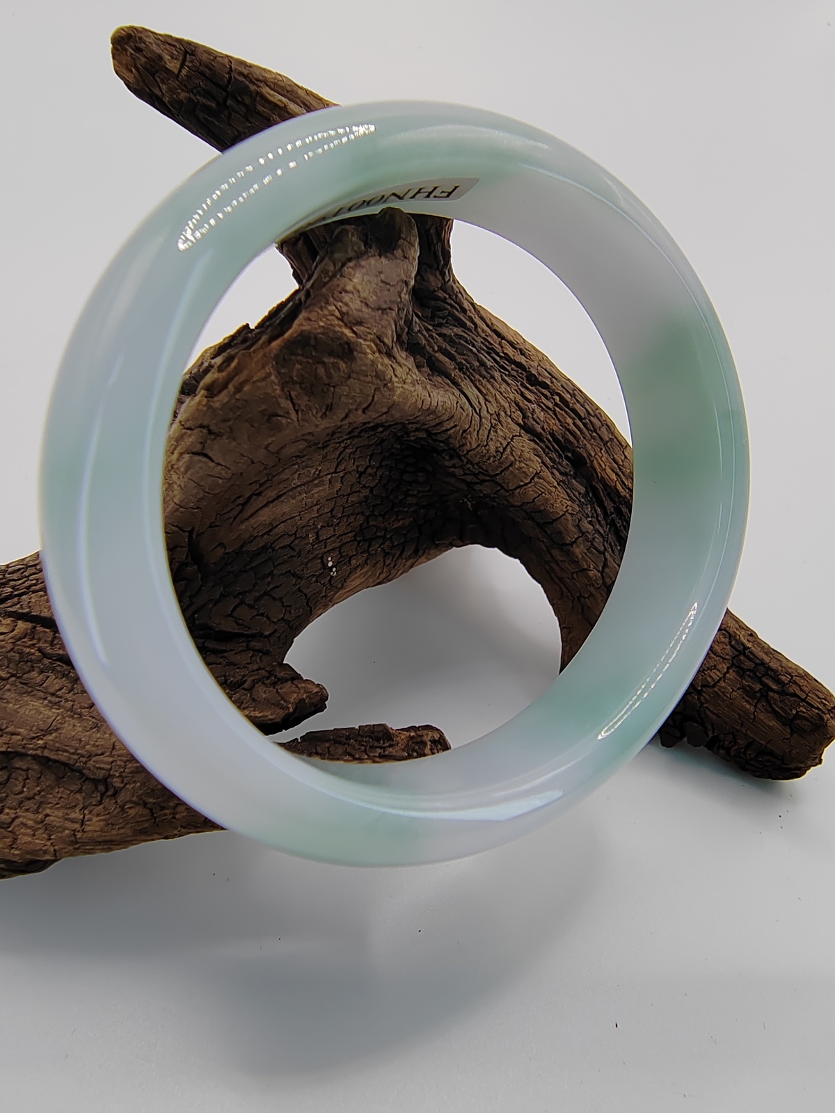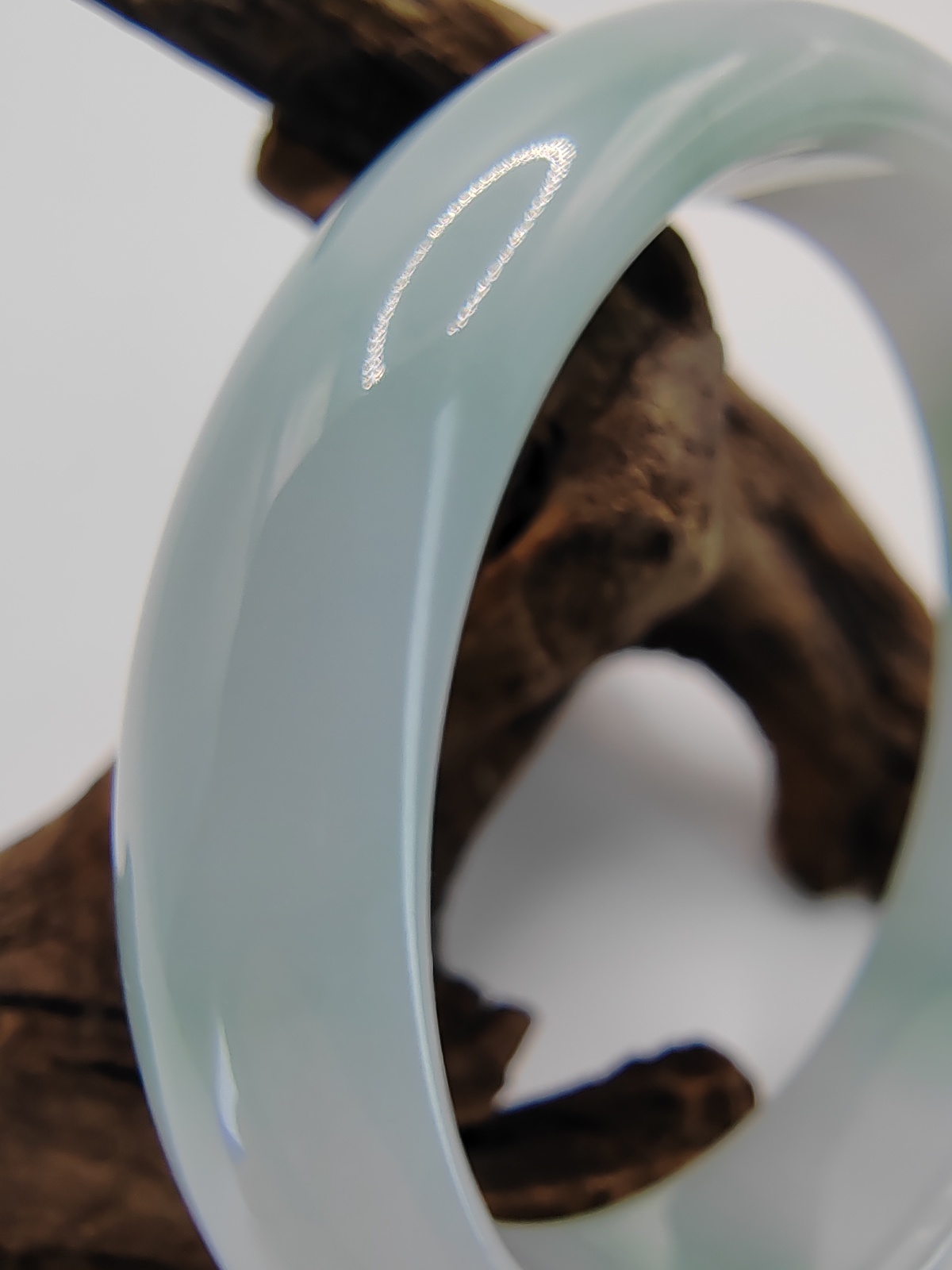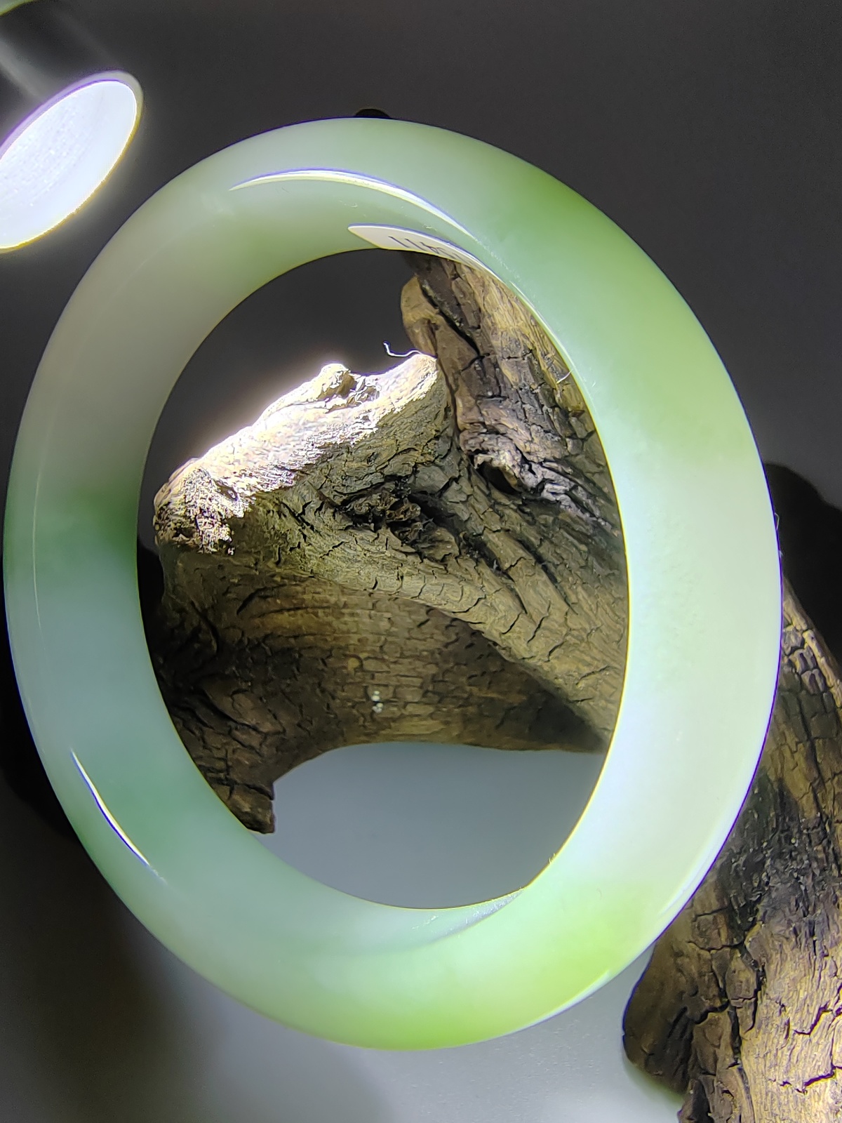 - 56.40 X 49.70mm Oval Light Green Burma Jadeite Jade Bangle Bracelet # 240 carat