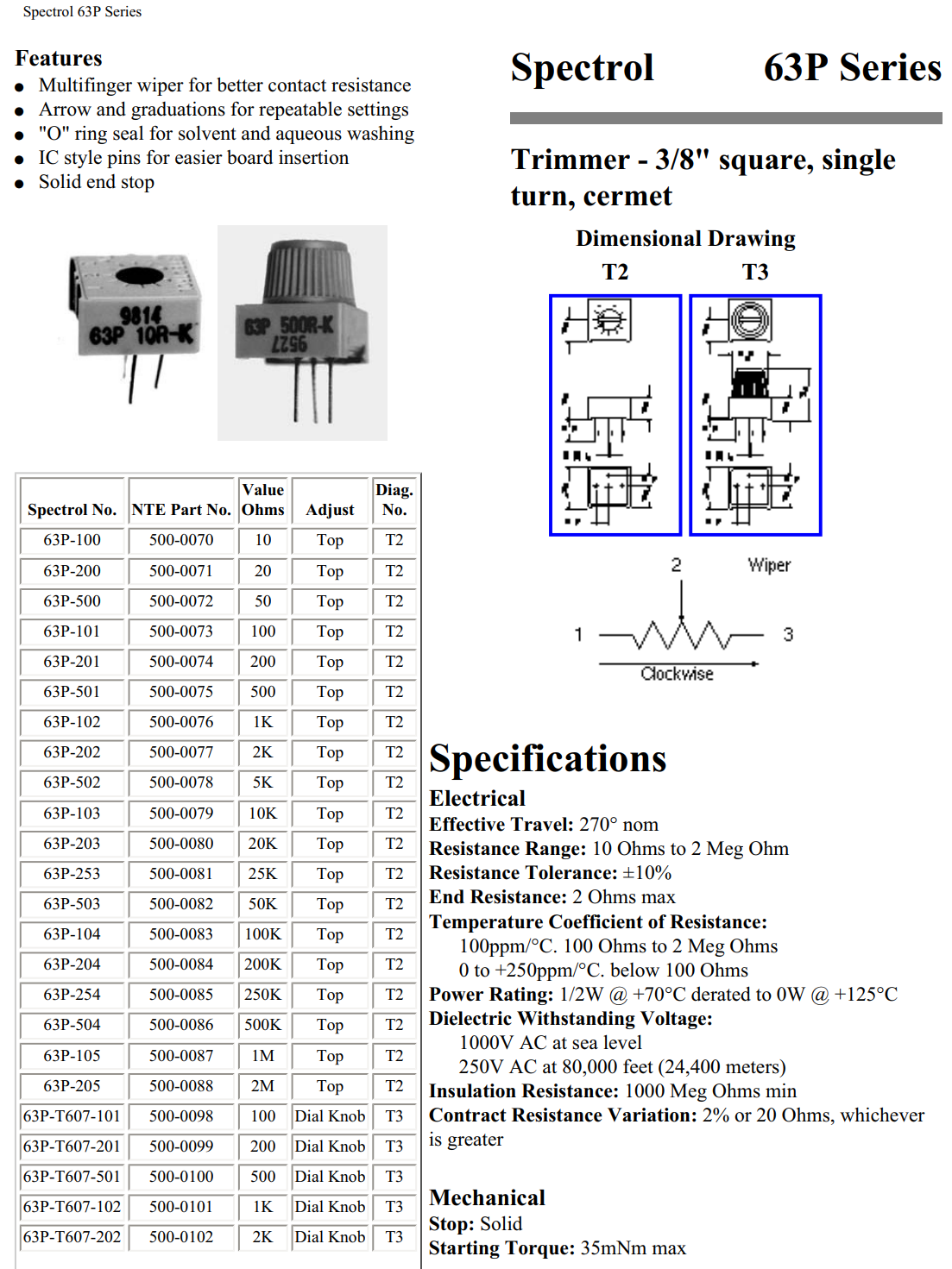 - 5PCS M63P204K 63P 200K-K Spectrol Single Turn Trimmer 200K Ohm 10% Potentiometer