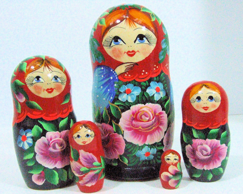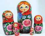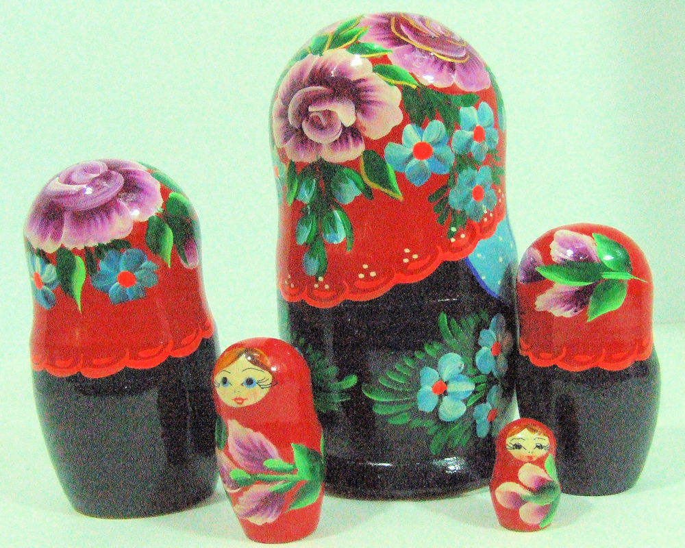 - 5pcs Hand Painted Floral Red Color Russian Nesting Doll