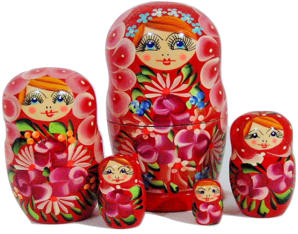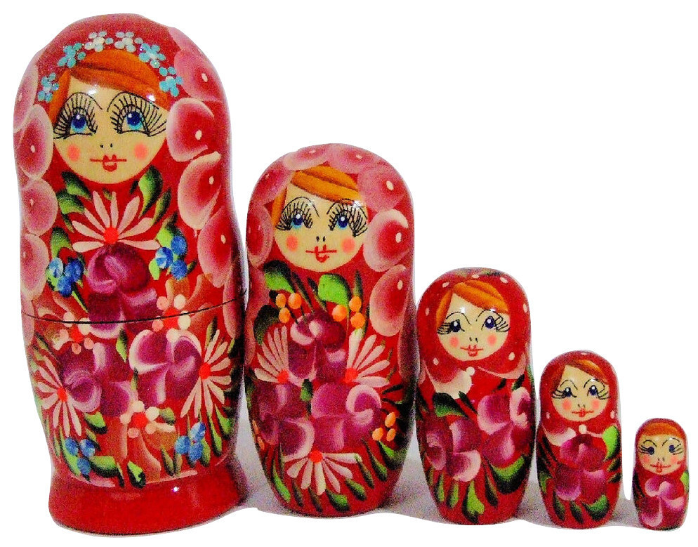 5pcs Hand Painted Floral Red Color Russian Nesting Doll