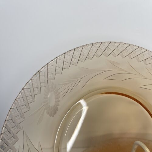 6 Etched Amber Glass Salad Plates Flower Depression Plate Fostoria Harvest