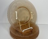- 6 Etched Amber Glass Salad Plates Flower Depression Plate Fostoria Harvest