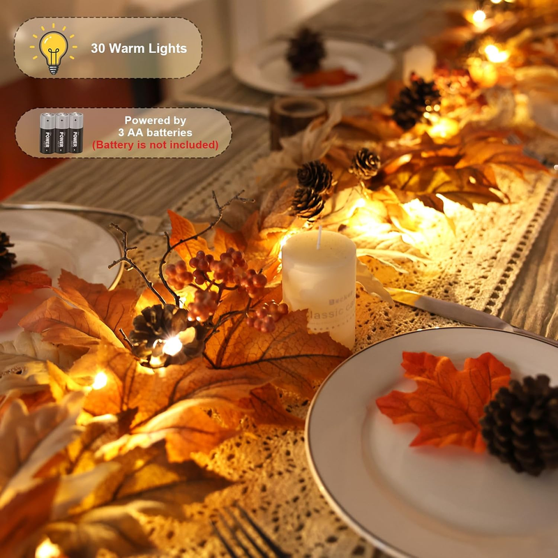 ?Fall Decorations for Home?: The fall leaves garland with lights have been carefully combined with pinecones and berries. You just need to place it in the center of the fireplace and dining table, and it can become a beautiful autumn decoration. It is very suitable for fireplaces, dining tables, porch, front doors, stairs, railings and sofa decorations. The high-quality material ensures that the maple leaf garland is durable. It can not only be used as an autumn decoration, but also as a Thanksgiving Halloween holiday decoration
