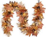 - 6 FT Fall Garland with Lights Timer Function Fall Leaves Garland with Berries Pi