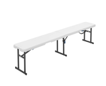 Lightweight design and convenient carry handle Half-folded for easy transport and storage Ergonomic pinch free buttons Features a button locking system that keeps legs open 600 lbs. distributed weight capacity UV-protected High-Density Polyethylene (HDPE) top Steel Frame with a power-coated steel finish Stain resistant and easy to clean Durable caps to prevent floor damage Indoor and Outdoor use Overall Dimensions: 72"(L) x 11.5"(W) x 16.5"(H) Bench Top: 1.65" Thick Folded Dimensions: 36" (L) x 11.5" (W) x 3.9"(H) Seating Capacity: 3 adults Weight: 13.2 lbs. Color: Bright White Granite Material: HDPE Plastic, Steel No assembly required.