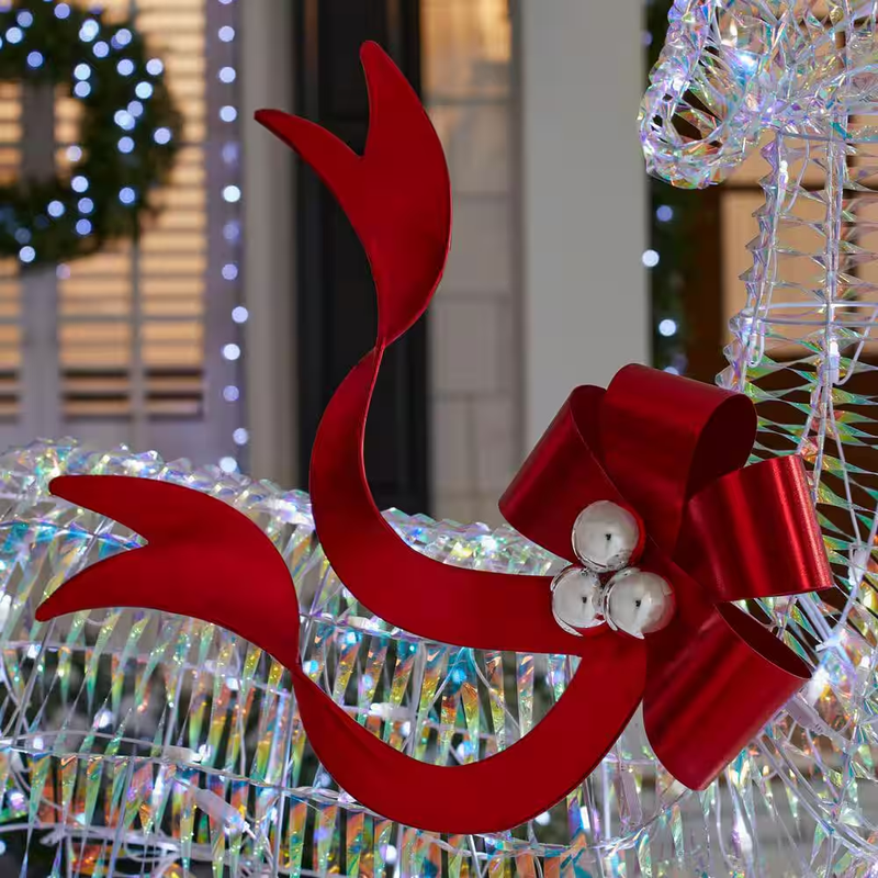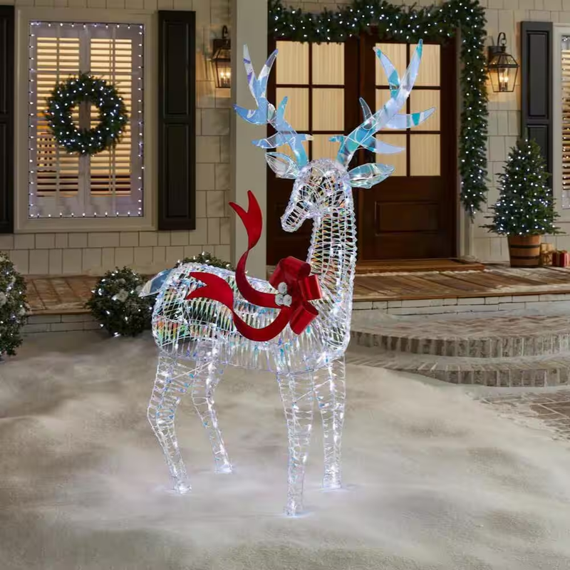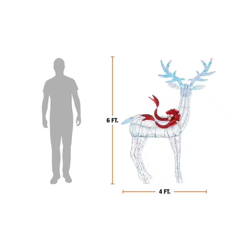 Create a festive Christmas display with this 6 ft. Iridescent Twist LED Iridescent Buck from Home Accents Holiday. This buck is suitable for indoor or outdoor use. It has 120 cool white LED lights and a durable pre-wired metal frame. It plugs into a standard outlet for flexible placement. Ground stakes, spare bulbs and fuses are included. It's the perfect yard decoration for your home, front porch, or yard. Pair with other Iridescent Twist holiday items.