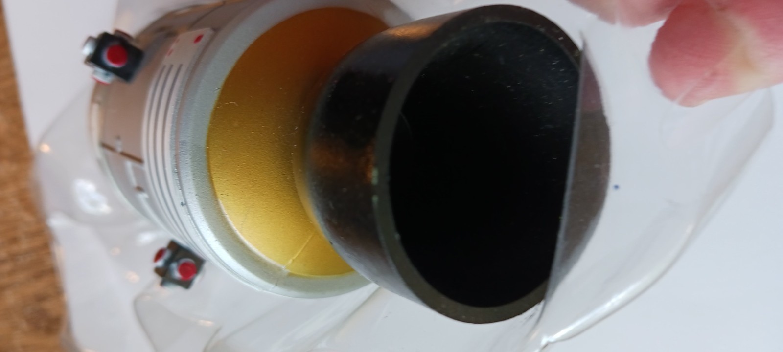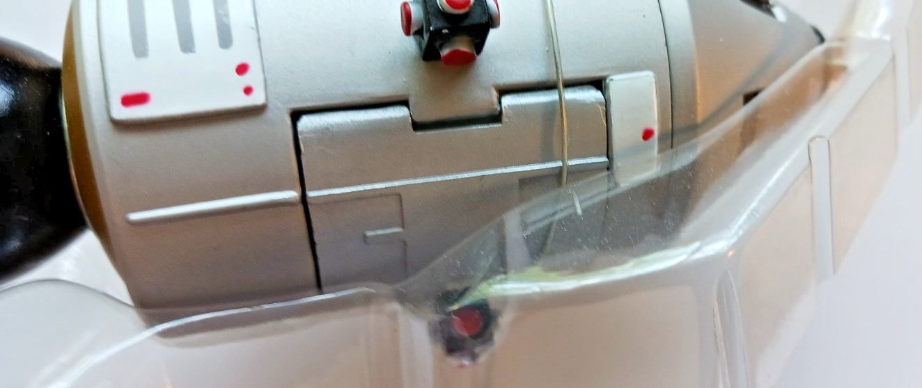 These are still mounted on a piece of plastic, part of the original packaging that is was never removed from. There are wires on it that keep the spacecraft attached to the plastic piece, which can be removed of course. The command module pops off of the service module (which is hollow inside), and 2 hatches open as well, one on the command module, and a larger one on the service module (I know this because I've had an open / used one of these before).