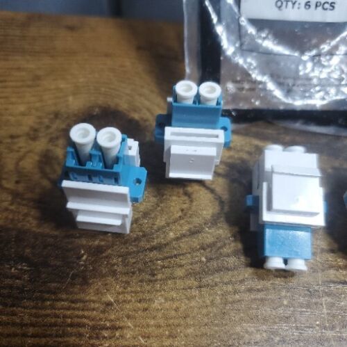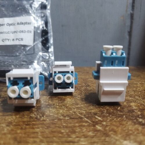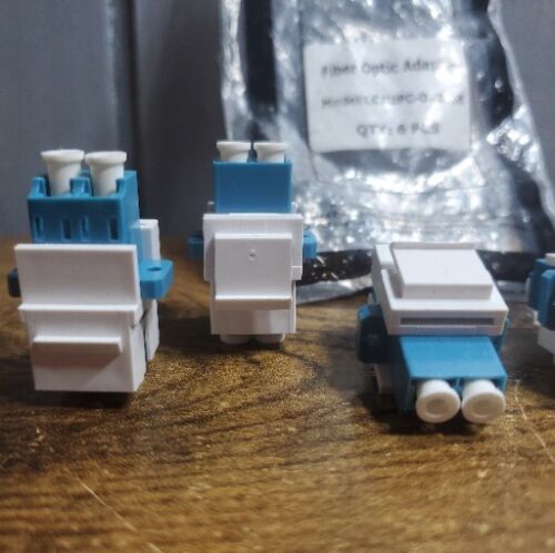 - 6 LC/UPC Single-Mode Duplex Fiber Optic Coupler Keystone Jack Snap-in White Blue